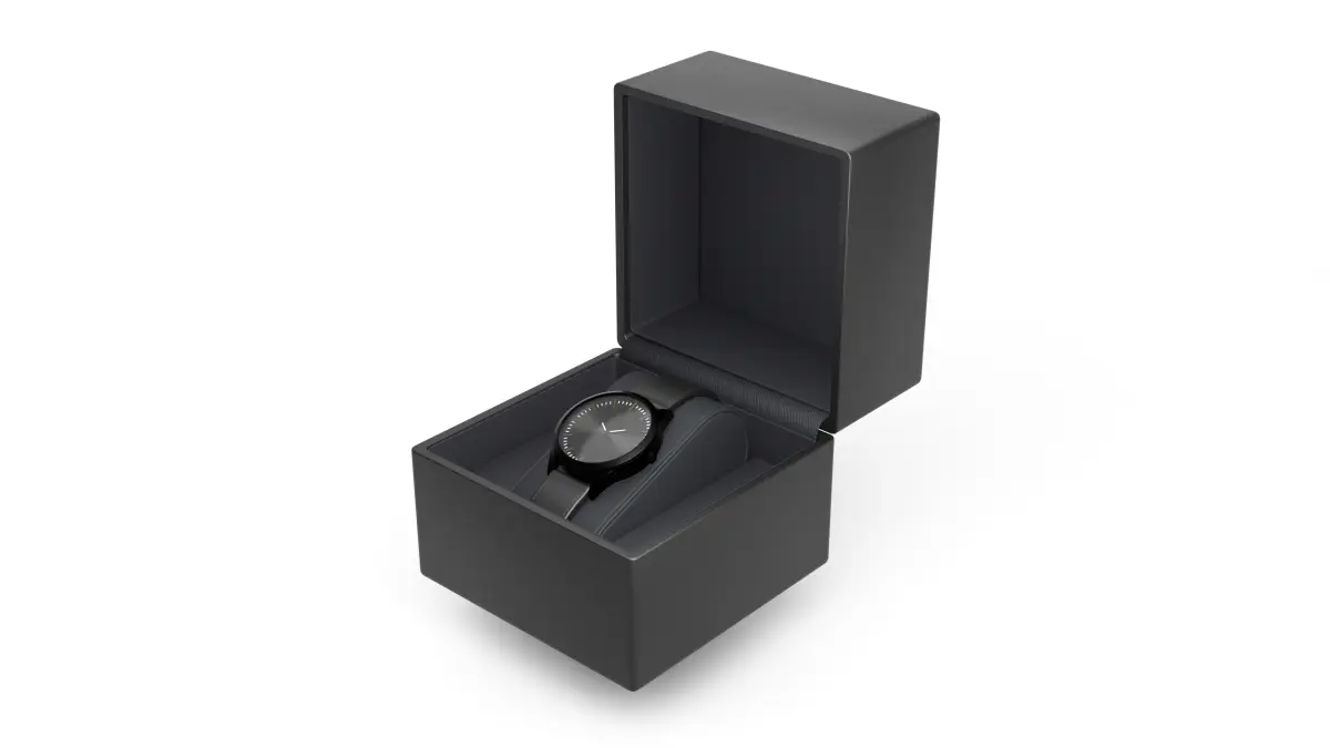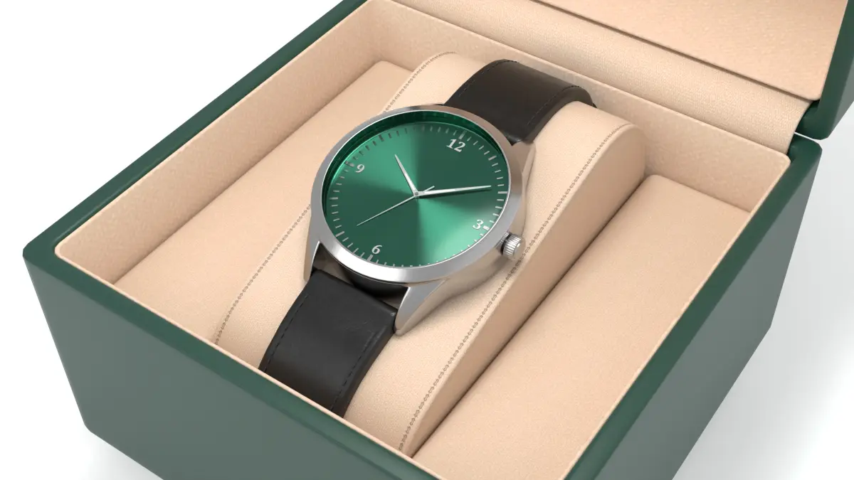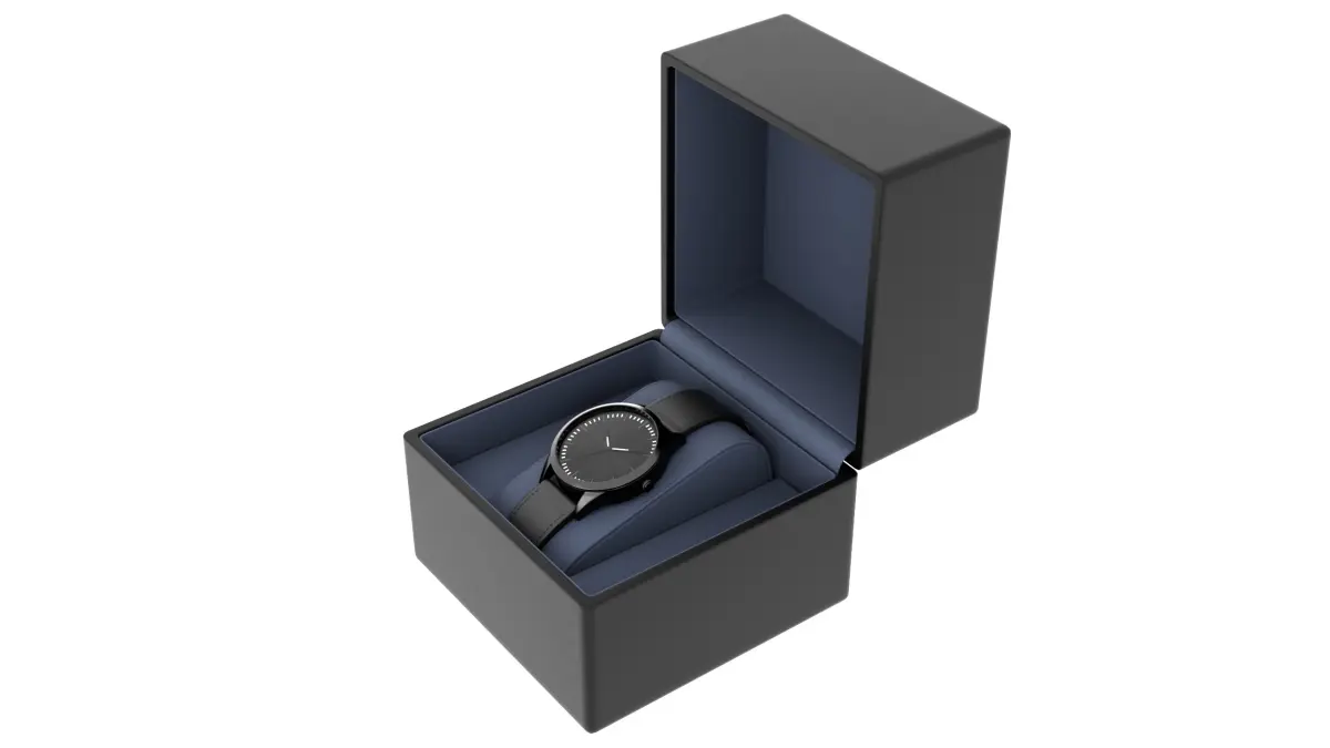 Elegant watch model with its case, made as a practice in blender, textured in substance painter and rendered in Cycles.