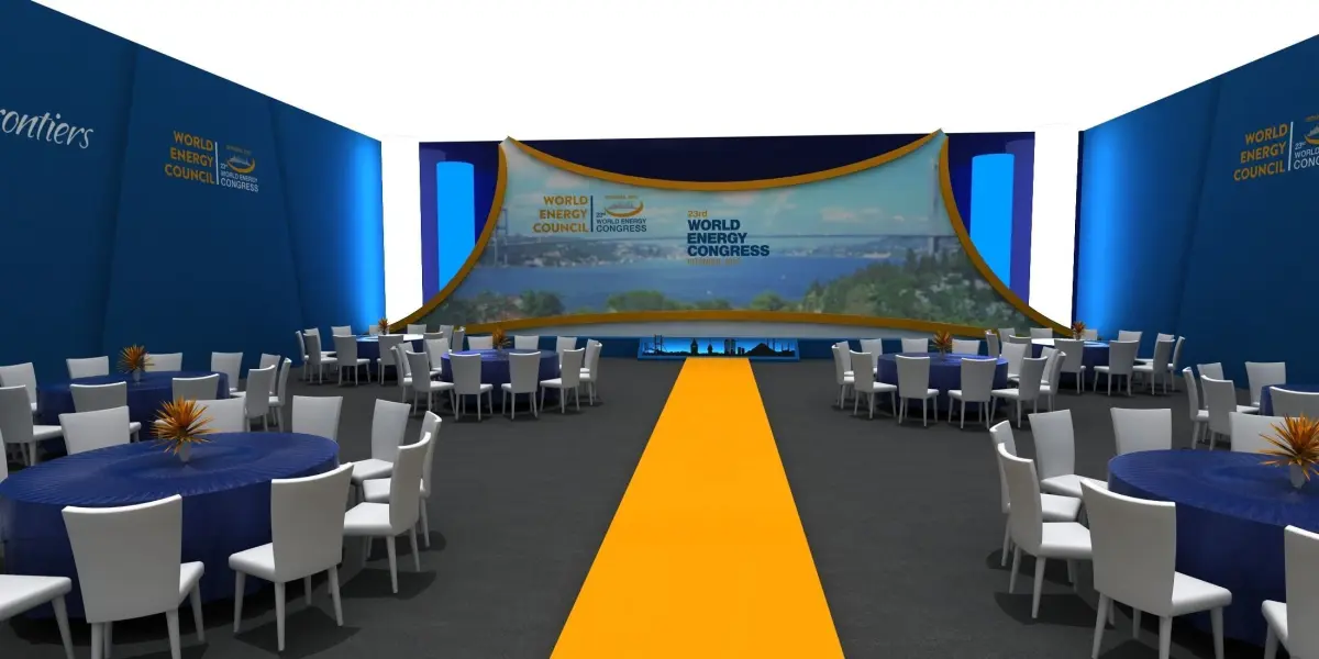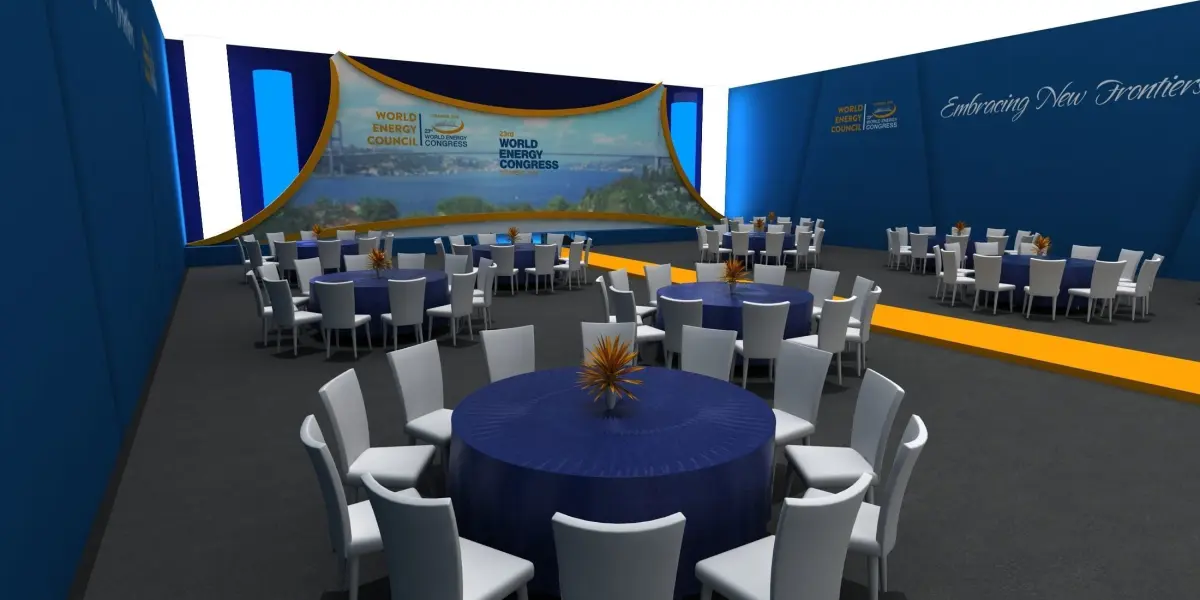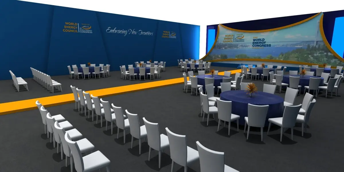 This is a 3d Watch Out Scenery decoration and seating arrangement setup.