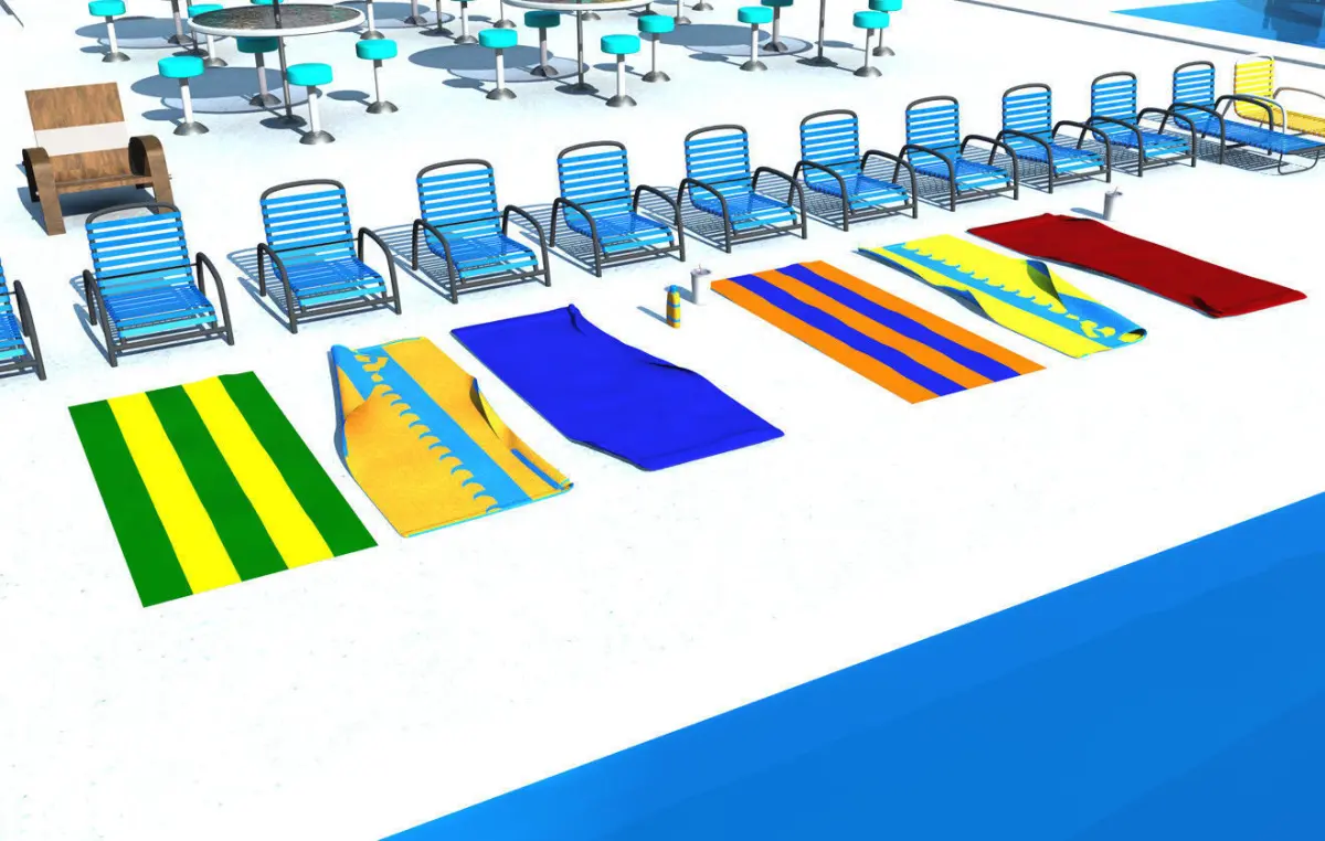 Palm treesRocksLifeguard towertowelschairs (Long, short, wood)Tables and stoolsfunnel slideinnertubecactus sprayscapespraygroundmain poolmain entrance (with line fence and chains)PA towersPlus more!
