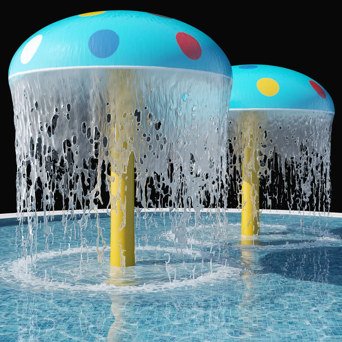 The model is assembled for subdivision (except for water).When using import formats, please apply MeshSmoth/TurboSmoth with 2-3 iterations.Foam and splash separate from the waterfall - easy to adjust to any pool depth if needed.The side of the pool is made with a sweep profile - if necessary, it can be made to fit any shape of the pool. Only at the same time, be sure to correctly assign an ID!There are two sizes in the archive:D160sm*H220/235sm. Pool depth - 50cm