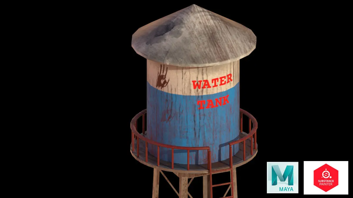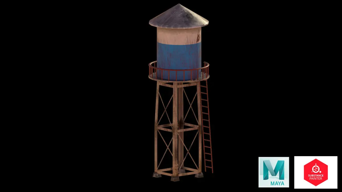 Low poly Water Tower TankMayasubstance painterFBXMBMAArchive fileOBJFBM Folder
