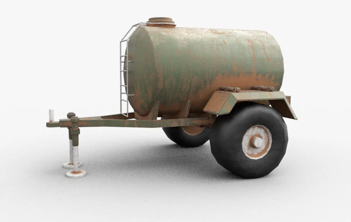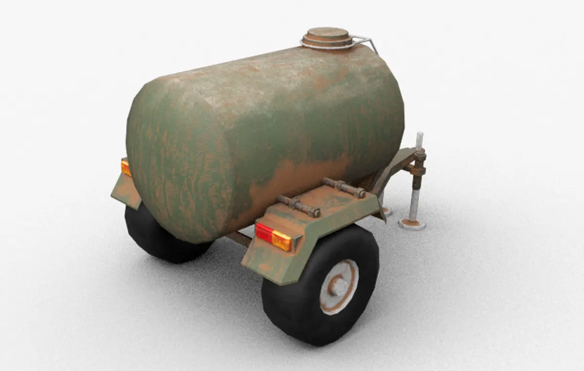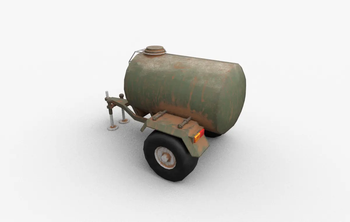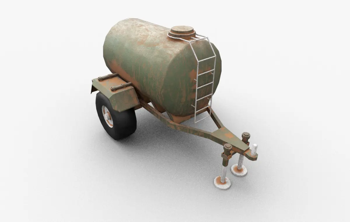 Lowpoly model of an Water Tank Trailer LowpolyThe materials have different formats. (3ds, fbx,obj) no animation. No interior design.