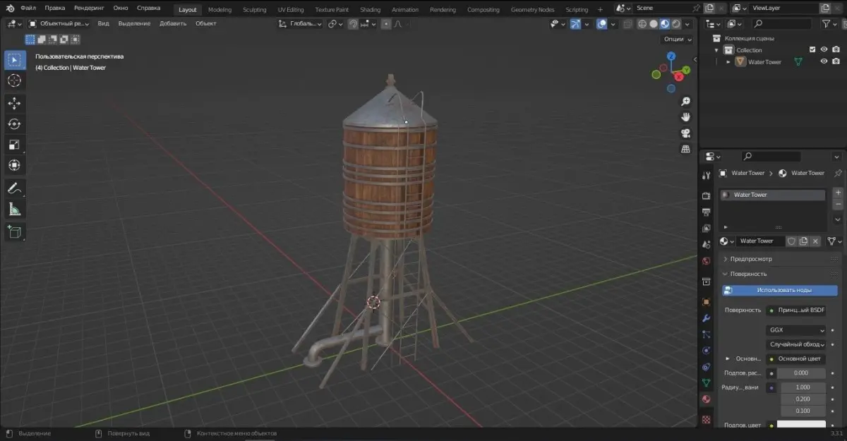 This is a 3d model of a of water tower for games or for your tasks. If you need more information or help with something, write to me and I will help you.