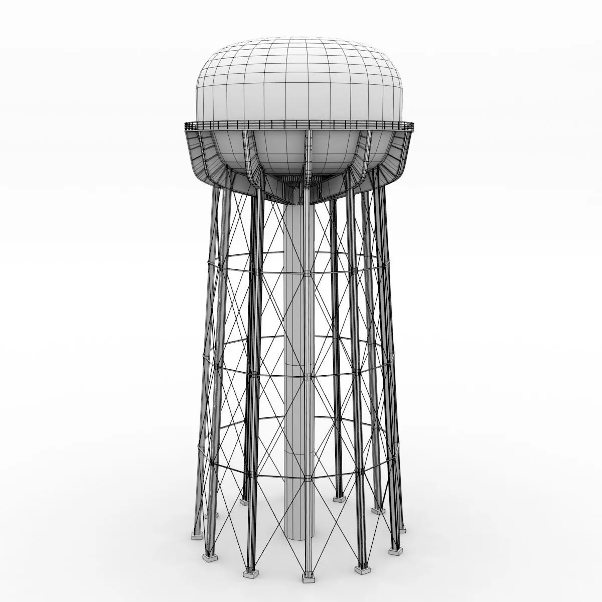 Simplified model of the Thomaston Water Tower found in Manhasset, NY.The model is properly UV mapped, with overlapping UVs. Renders were created with Cycles.
