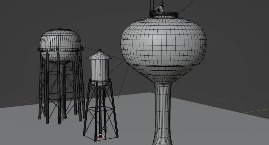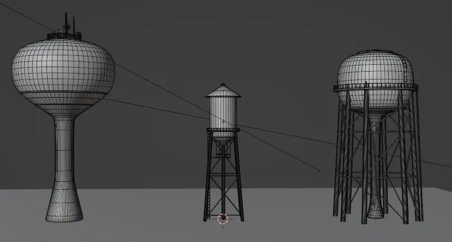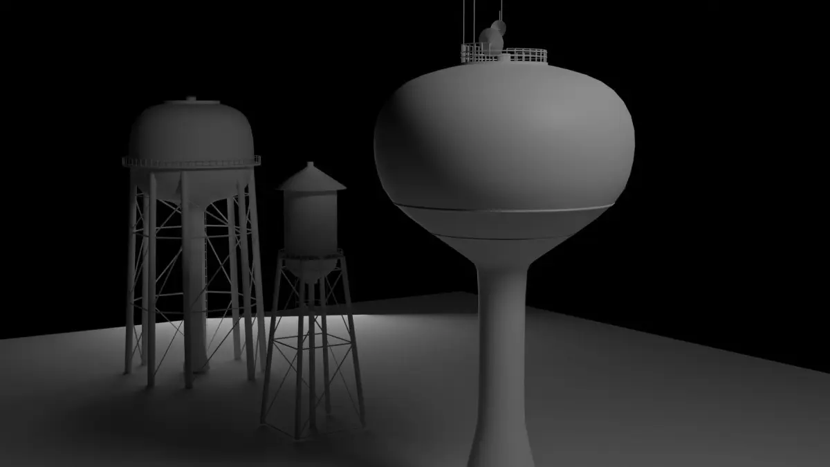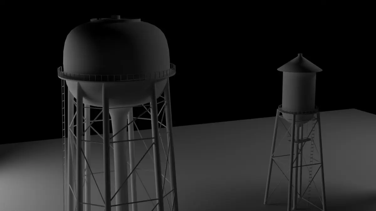 It includes three different styles of water tower, each to be applied to your own usage in multiple ways. Atmospheric? Set piece? Background? Yours to decide.