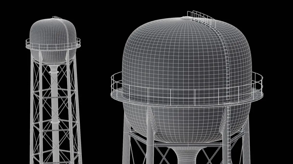 A 51 meters (167 feet) tall water tank with a diameter of 13 meters (42 feet). Slightly dusted and aged due to environment exposure. Perfect for your cityscape scene or urban game. Modeled in Blender and textured in Substance Painter.