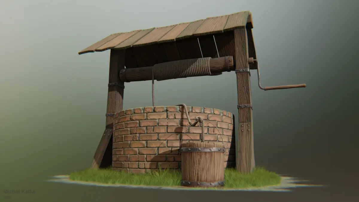 WARNING! Grass, ground plane, and underground part of the well were created only for purpose of rendering and presentation and are not included in the package. Images with wireframes show geometry stored in FBX and OBJ files.