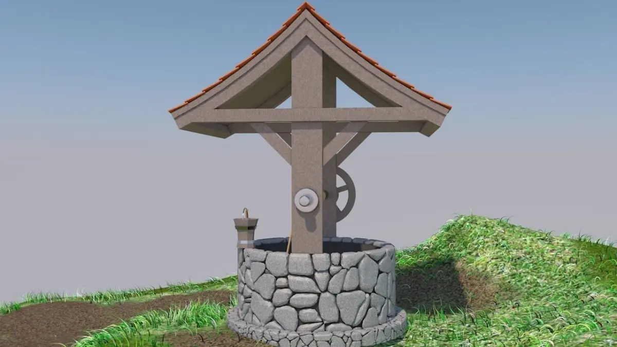 Water Well with the scene (grass, mountains image)This model is a nice AAA medieval water well.