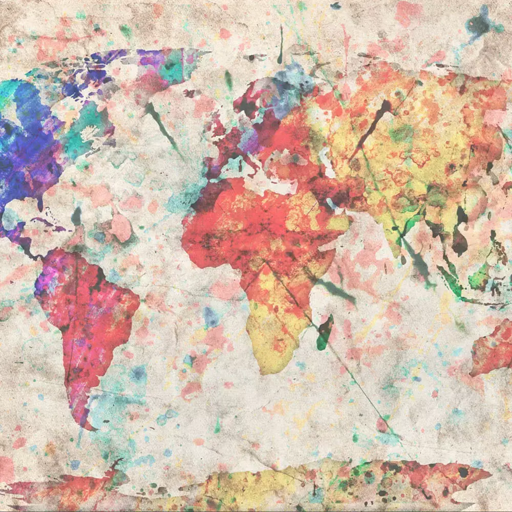 This seamless texture features a vibrant watercolor world map painted across a weathered paper‑plaster surface, perfect for travel‑themed interiors, kid’s rooms, cafés, studios, and stylized game environments. The albedo is shadow‑free, capturing rich reds, yellows, greens, and blues with ink bleeds, splatters, and gentle paper grain for authentic analog character. Normal and height maps reproduce subtle paper creases, light surface denting, and speckled plaster texture so raking light reads realistically on large walls. The roughness map is authored for a matte, chalk‑ink finish with slightly smoother scuffs to avoid plastic highlights while maintaining lively specular breakup. Delivered in 4K and 8K square resolutions, the set tiles cleanly on both axes to cover expansive surfaces with minimal repetition. Built for metal/rough PBR workflows (metal = 0) and compatible with Blender, 3ds Max, Maya, Cinema 4D, Unreal Engine, and Unity. For best results, keep roughness high (0.65–0.9), enable AO to tighten paper creases, and drive parallax or displacement from the height map for close‑up hero shots. Organized folders, lossless PNGs, and lightweight JPEG previews make importing fast. Ideal for education spaces, editorial sets, product backdrops, and any scene needing a colorful, cartography‑inspired mural.