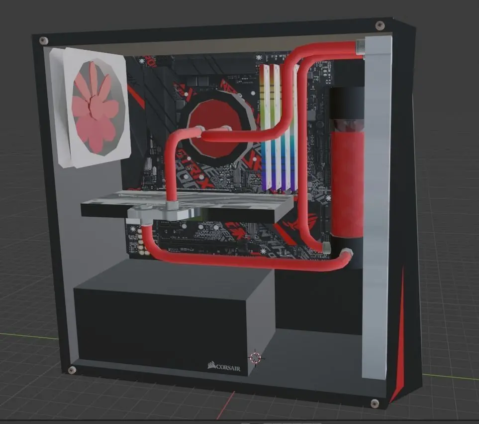A low poly gaming PC with custom loop watercooling to bring in your room sceneries. Model made with Blender.The window is a separated mesh and can be removed if you need to. Also the RGB lights are separated mesh so you can set emissive textures if needed for your project.