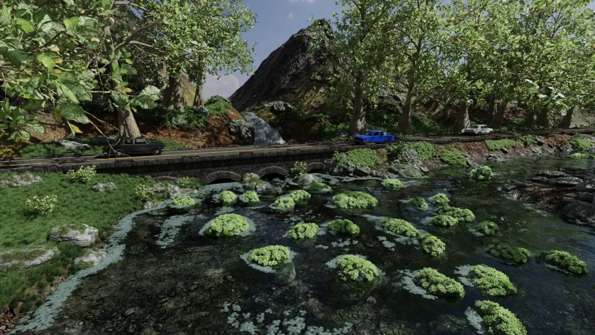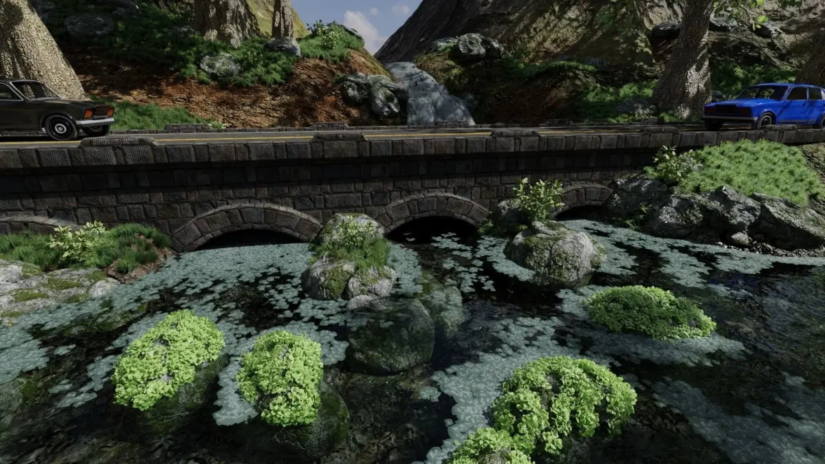 Waterfall Bridge Scene Made In Blender3D v2.92. Waterfall is not a simulation