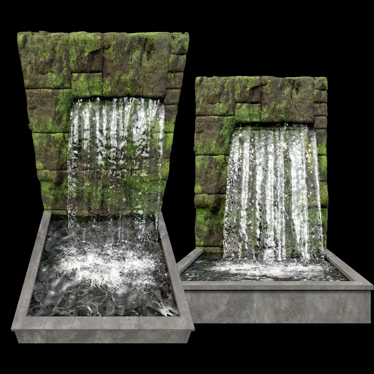the model includes 2 types of waterfall and fountain.