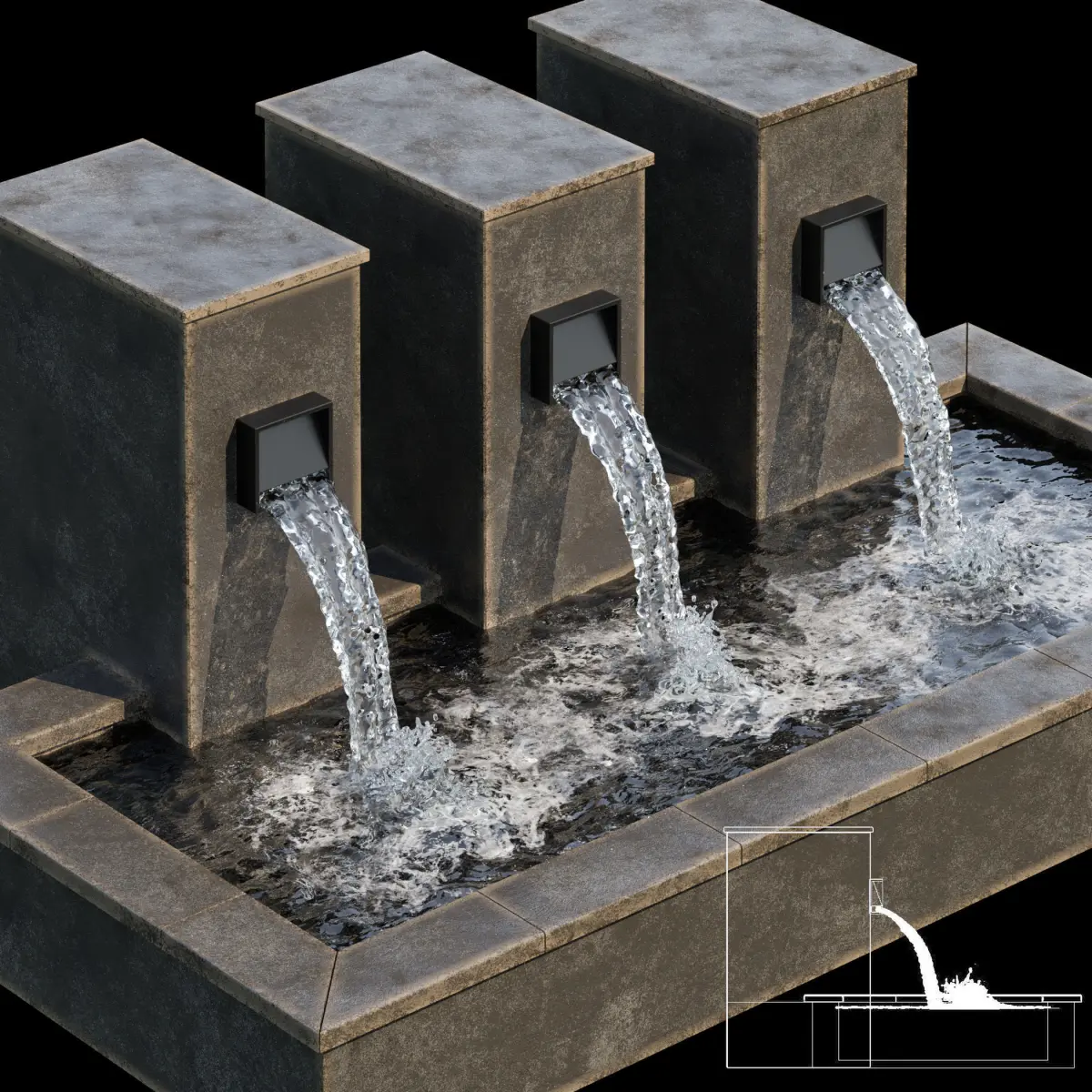 high quality models of water fountains with high detail "They look great and you can use them in interior and exterior projects.