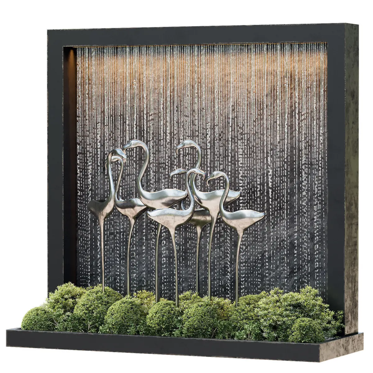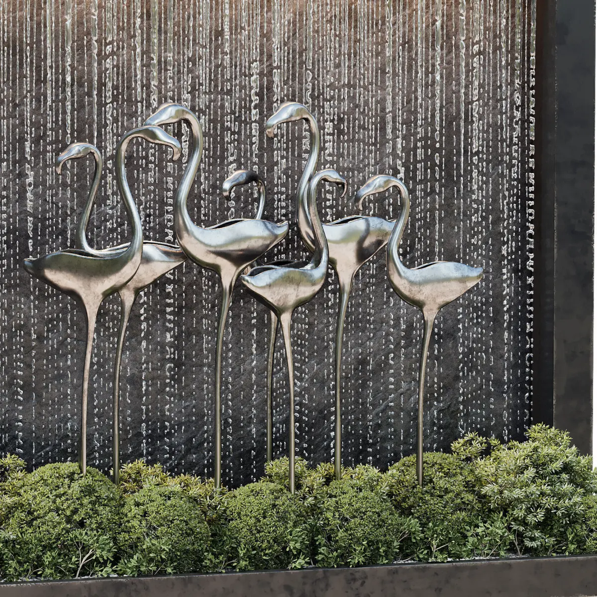 This high-quality 3D model features a stylish composition of metal flamingo sculptures set against a vertical water wall, creating a luxurious and tranquil decorative element. Carefully crafted in 3ds Max 2016, the model comes optimized for both Corona Renderer 9 and V-Ray 6, delivering outstanding realism and detail.