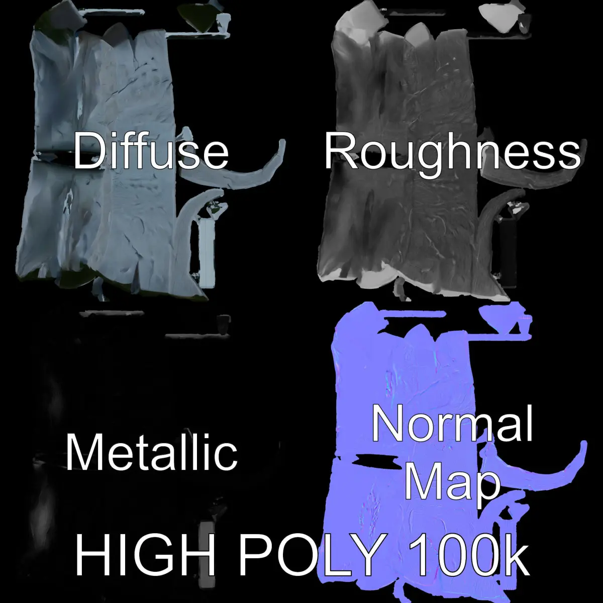 Textures include PBR, Diffuse, Normal Map, and reflection/roughness/metallic, ensuring compatibility with modern rendering engines. All models feature accurate unwrapped UVs with no overlapping. Textures are 4096x4096 in size, providing detailed visuals for your projects.
