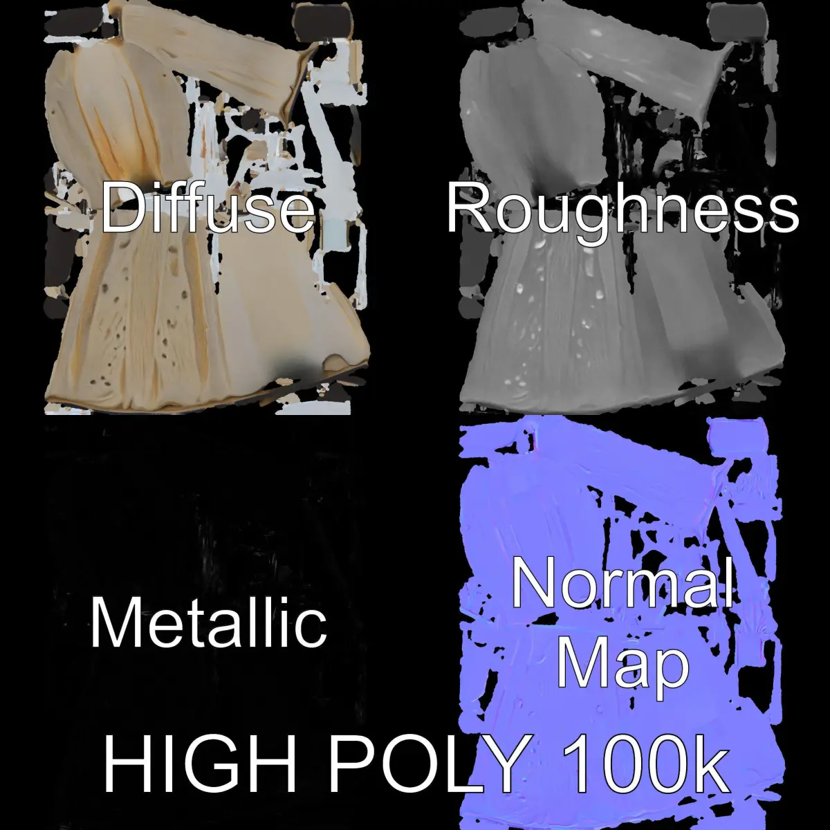 The textures are PBR, including Diffuse, NormalMap, and reflection/roughness/metallic, all at 4096x4096 resolution. Each model is accurately unwrapped with no overlapping UVs, ensuring high-quality visuals.