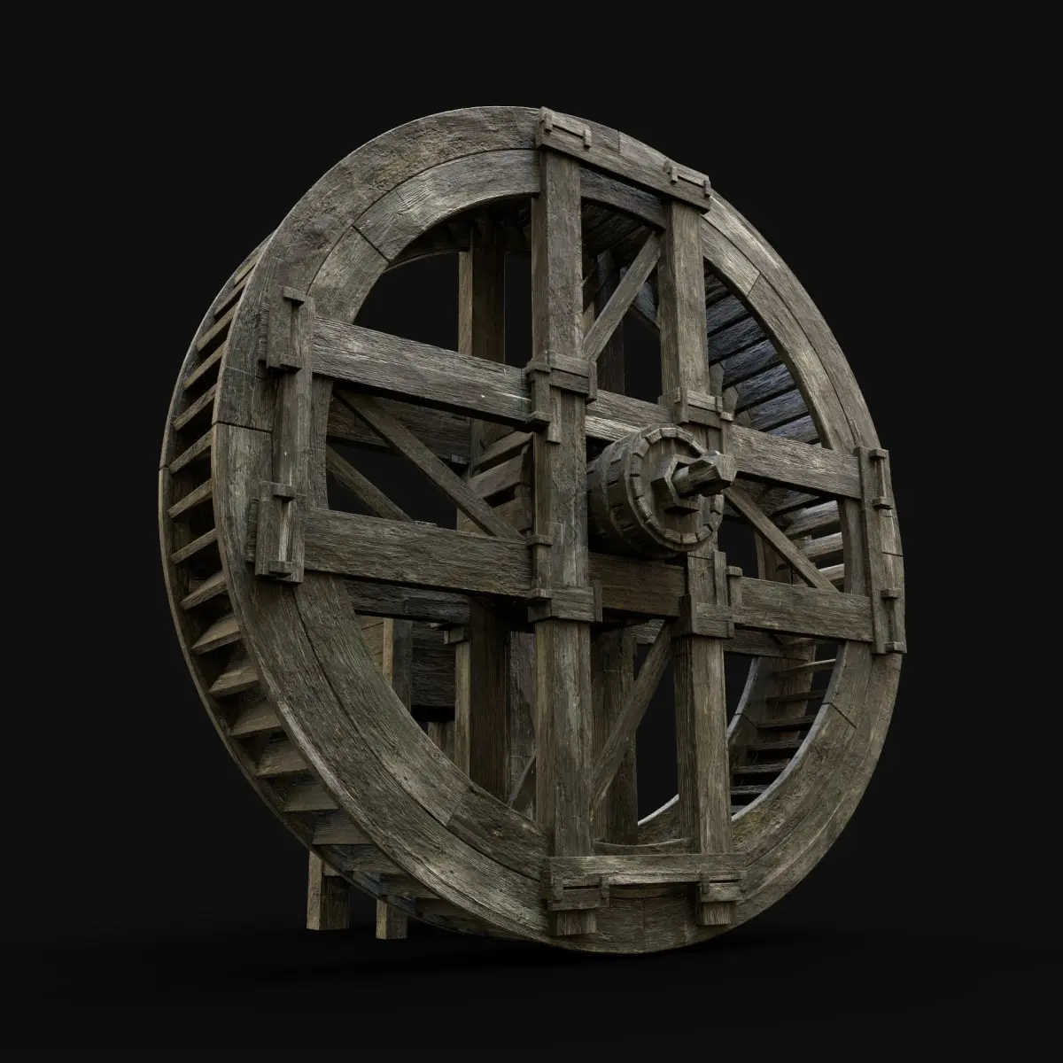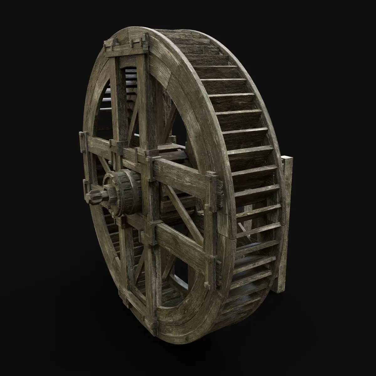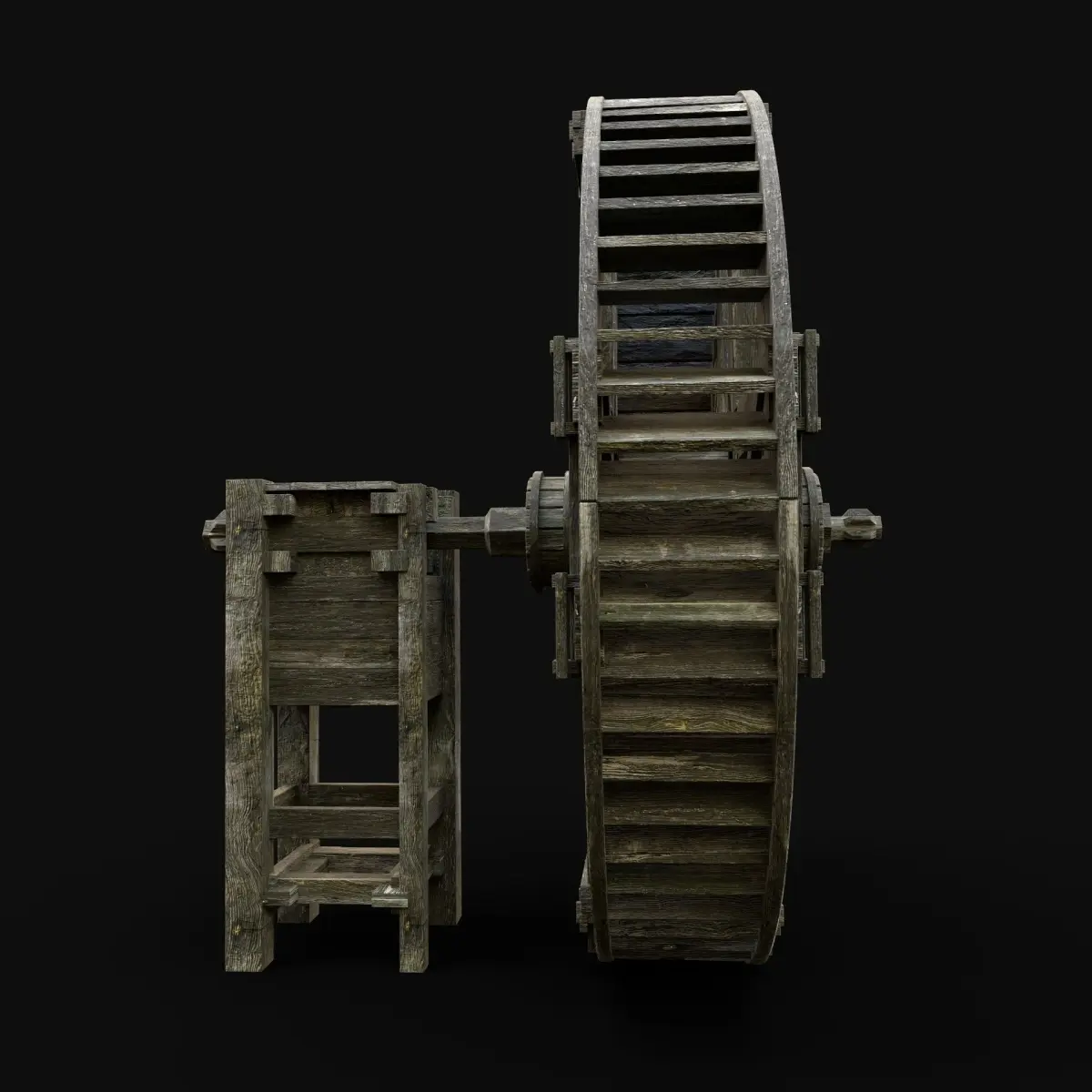 - Next gen, AAA quality, game-ready model of wooden watermill wheel.