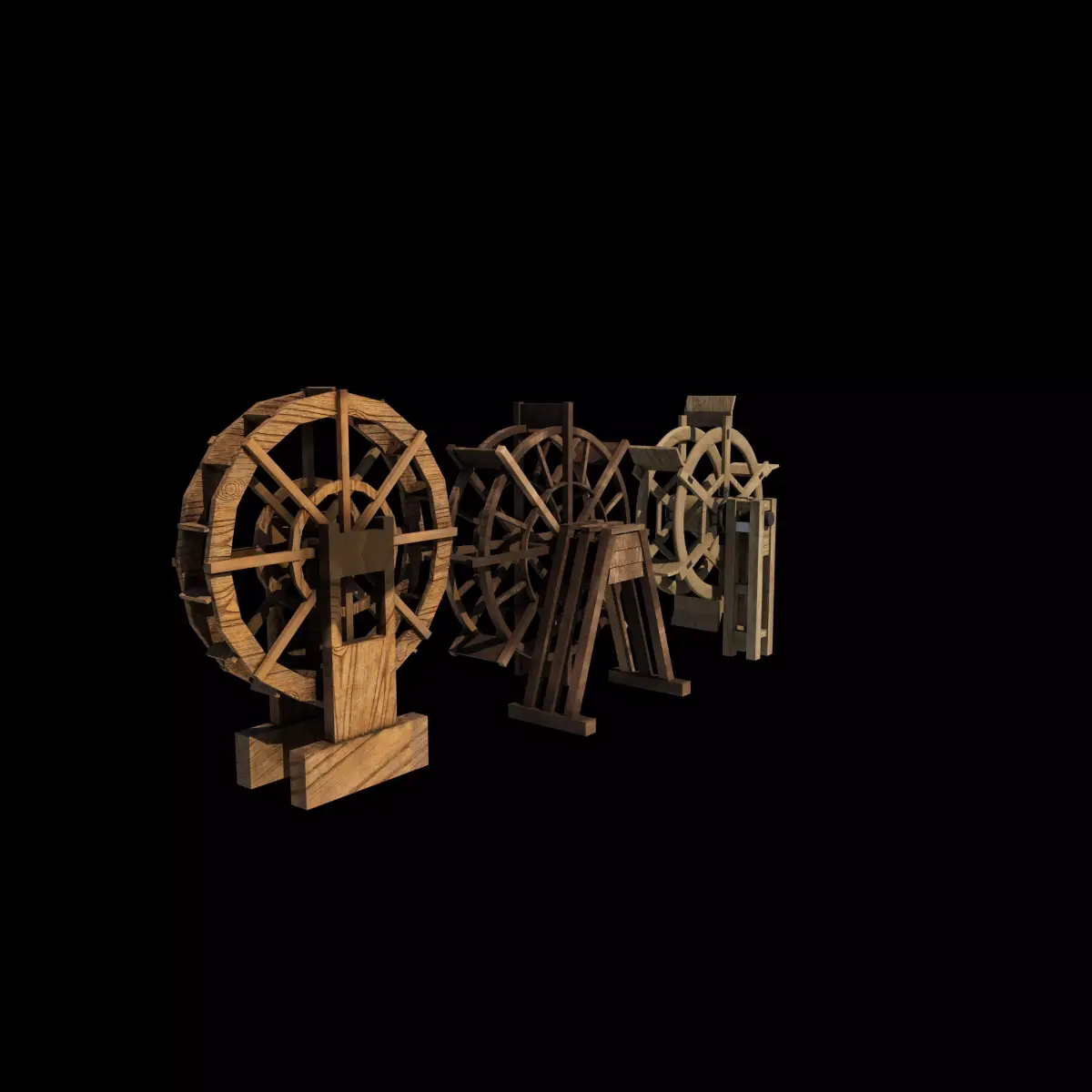Watermill wheel set 02.obj OBJ (.obj, .mtl) 2024