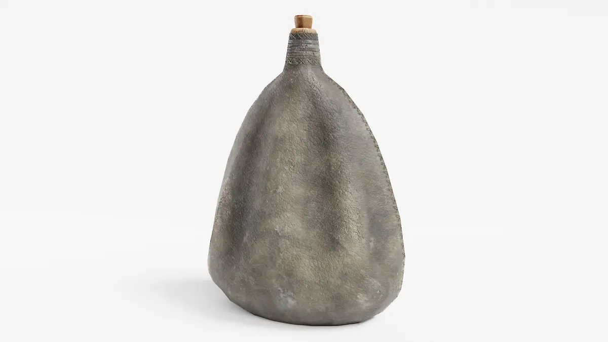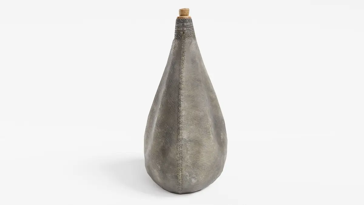 - This product consist collection of low polygon PBR model of waterskin flask old leather water er1