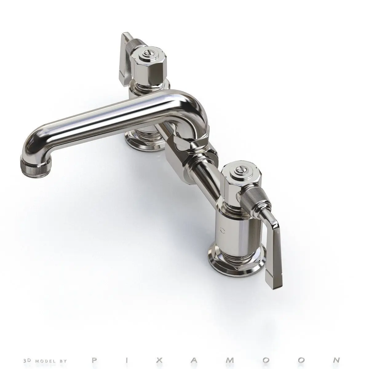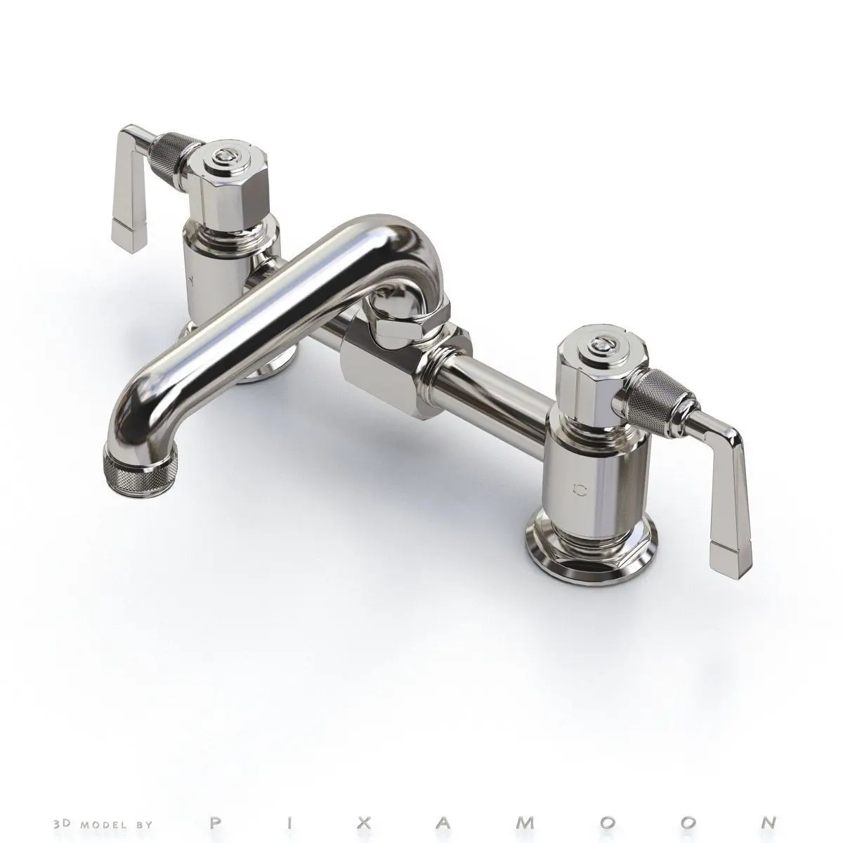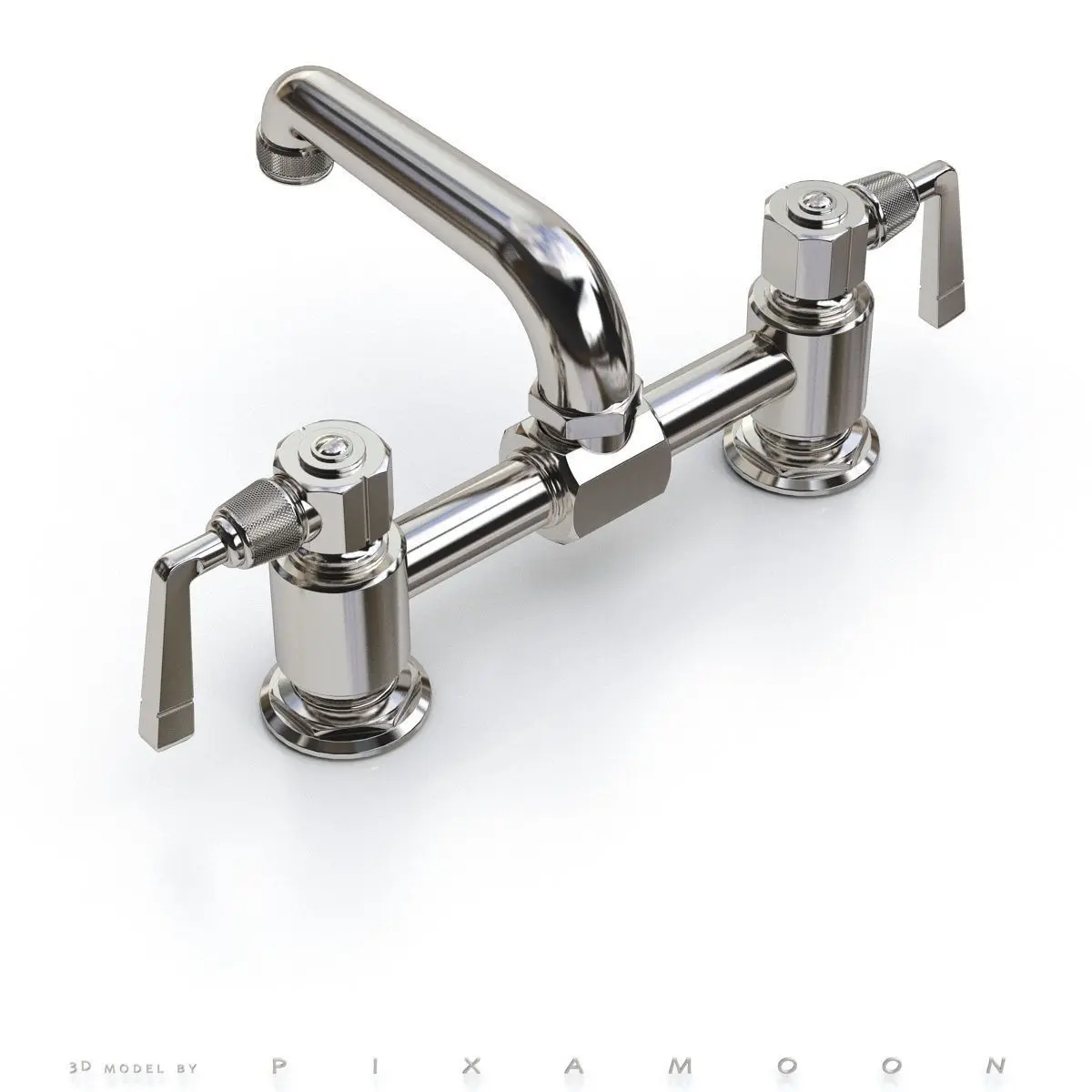 Waterworks R.W. Atlas lavatory faucet, bridge two hole deck mounted with metal lever side mount handles