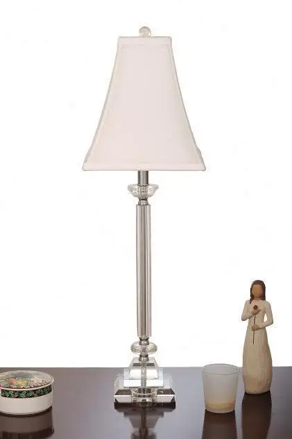 - Putting a spin on traditional design, this buffet lamp is sure to grab glances. Its pedestal-style base is crafted from clear crystal, leading into a slim stem with turned details. This luminary is compatible with a dimmer switch, so you can set the mood in a snap. It measures 29'' H x 10'' W x 10'' D overall.
