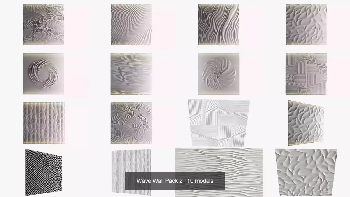 This collection includes decorative wavy walls that can be used both indoors and outdoors. The typical dimensions are 3 meters by 3 meters with a thickness of 5 to 7 centimeters.