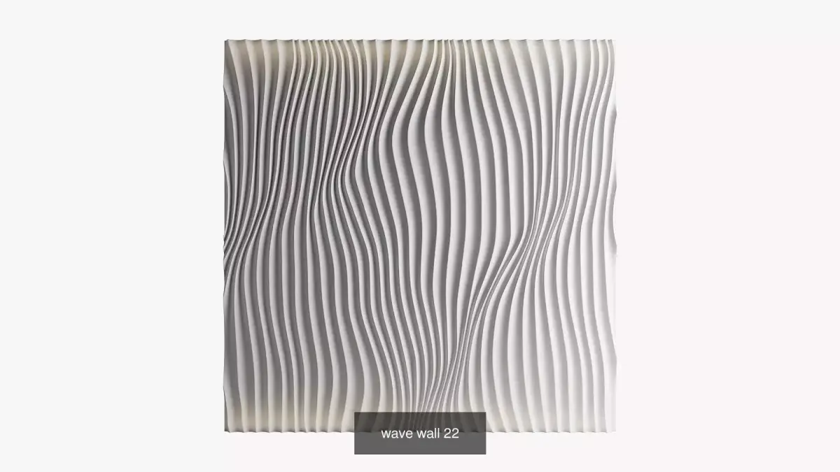 This collection includes decorative wavy walls that can be used both indoors and outdoors. The typical dimensions are 3 meters by 3 meters with a thickness of 5 to 7 centimeters.