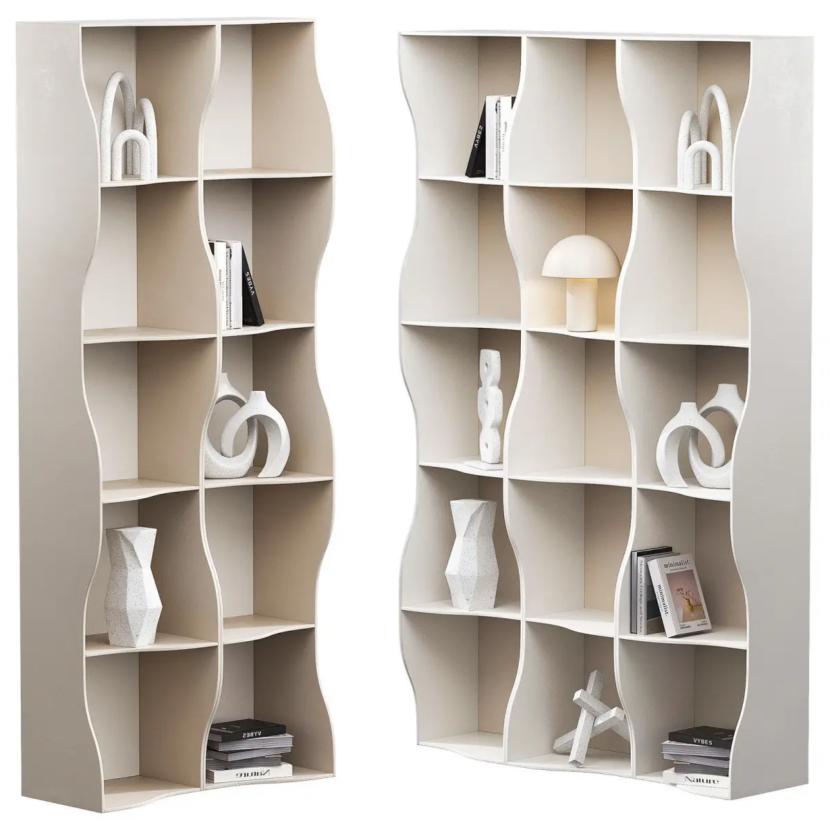 the 3D model contains a storage system - a set of decorative shelving.Designer bookcases with shelves - suitable for the interior of a home, office, study.Wavy shape with smooth curves.