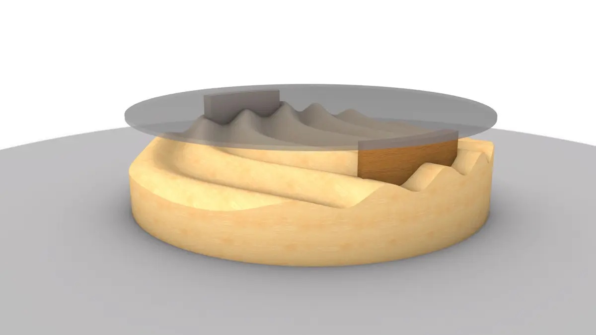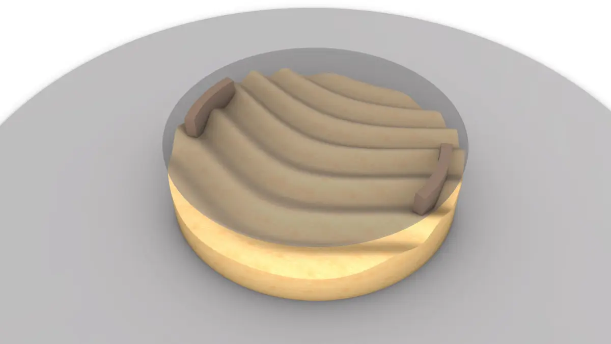 A Coffee Table with Wavy Wooden Structure in a Sci-Fi form, with a circular glass panel on top of Two Supports that are fixed and embedded into the wavy wood, the model has one main mass of wood that rests on the ground and the glass top on top of wooden supports, the model was created using computational parametric tools to achieve the most accurate geometry with clean details, it could be used for architectural render purposes indoors, and also for interior design, furnishing and decoration.