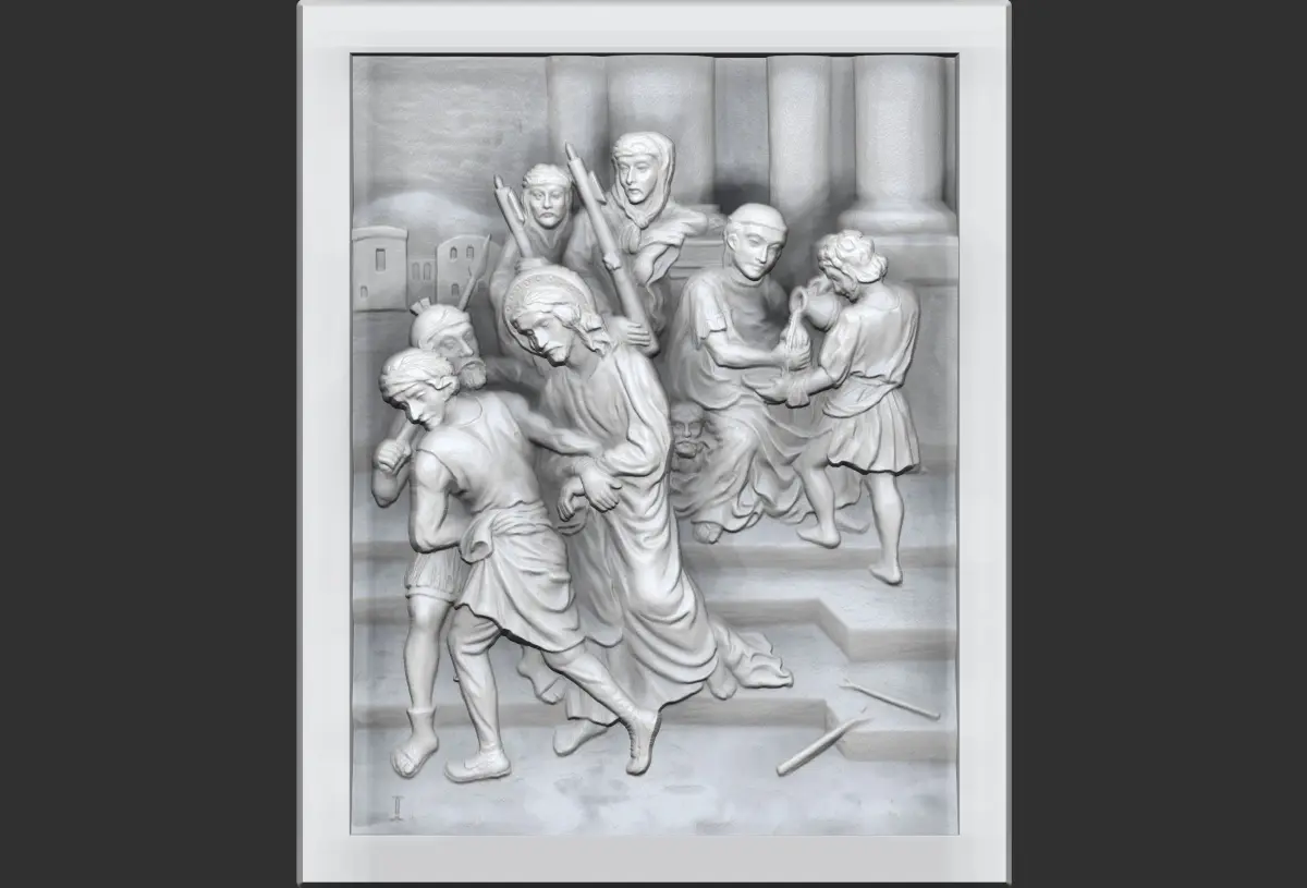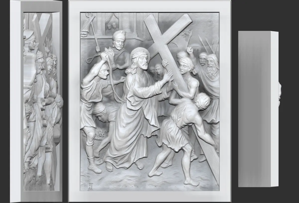 Scaned relief edited and renderd in Zbrush - artcam software.Way Of The Cross-14 Stations of the Cross - Via_Dolorosa - Via Crucis - Jesus Christ Christian free stations model https://www.cgtrader.com/free-3d-print-models/art/sculptures/jesus-dried-by-veronica-way-of-the-cross-14-stations-via-crucis