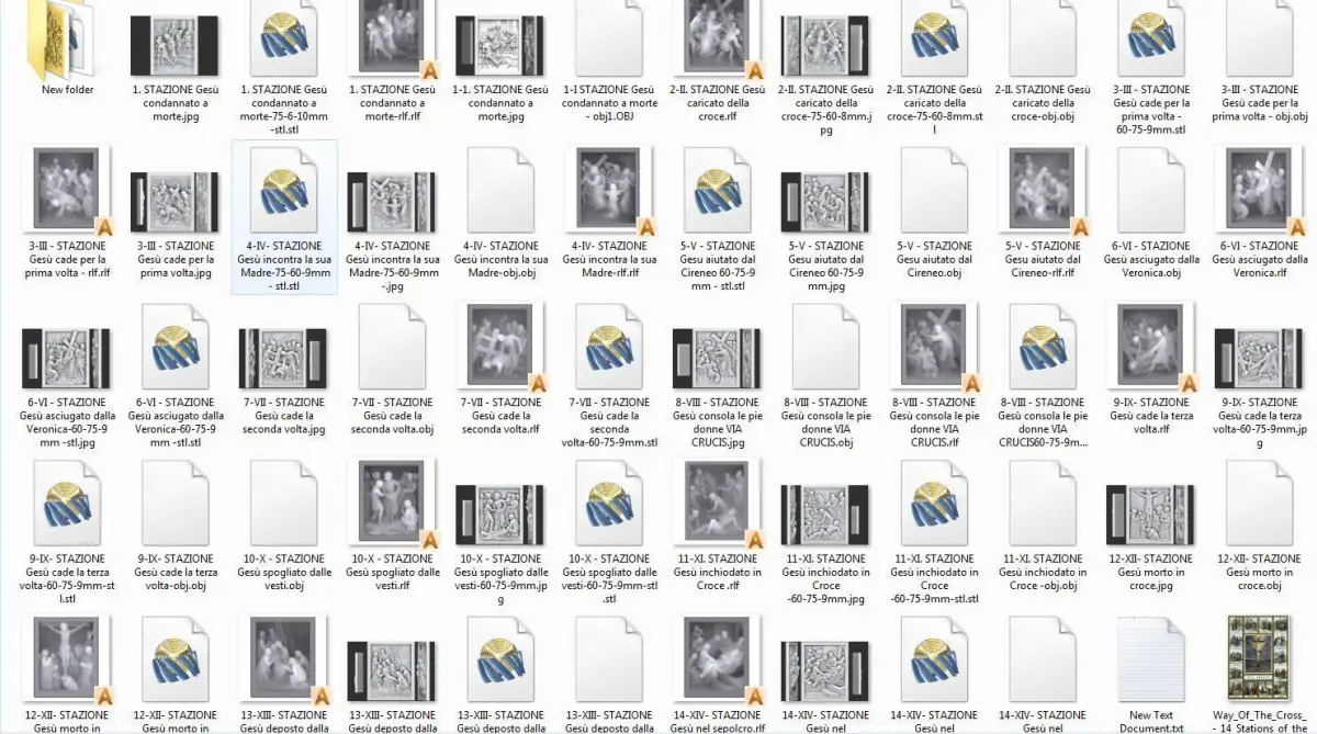 - STAZIONE Gesù condannato a morte 1.I STATION Jesus condemned to deathII. STAZIONE Gesù caricato della croce 2-II. STATION Jesus carrying the crossIII. STAZIONE Gesù cade per la prima volta 3-III. STATION Jesus falls for the first timeIV. STAZIONE Gesù incontra la sua Madre 4-IV. STATION Jesus meets his MotherV . STAZIONE Gesu aiutato dal Cireneo 5-V. STATION Jesus helped by the CyreneanVI . STAZIONE Gesù asciugato dalla Veronica 6-VI. STATION Jesus dried by Veronica free