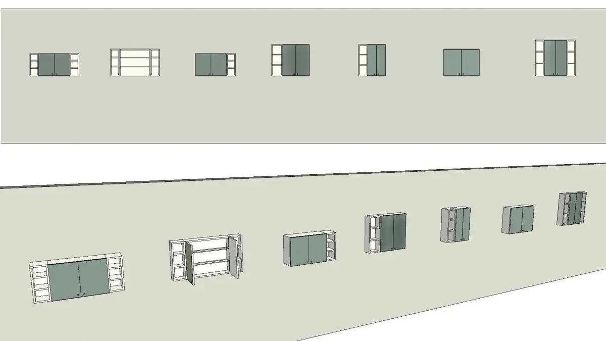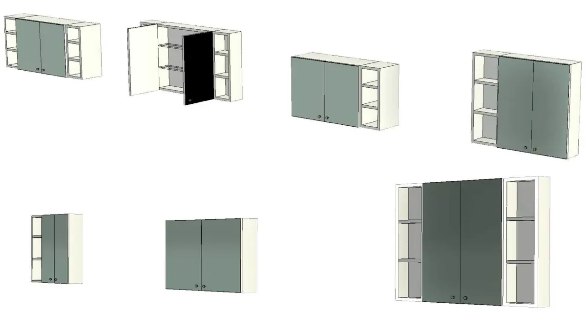 This is a fully parametric wall based revit family for a WC wall cabinet with mirror doors and side shelves. Family model can be placed on any wall controlling the overall elevation from the reference level.Fully parametric controlling the dimensions of the cabinet, options to turn on and off the side shelves and have graphical representation of open and closed cabinet doors.