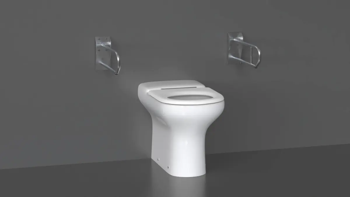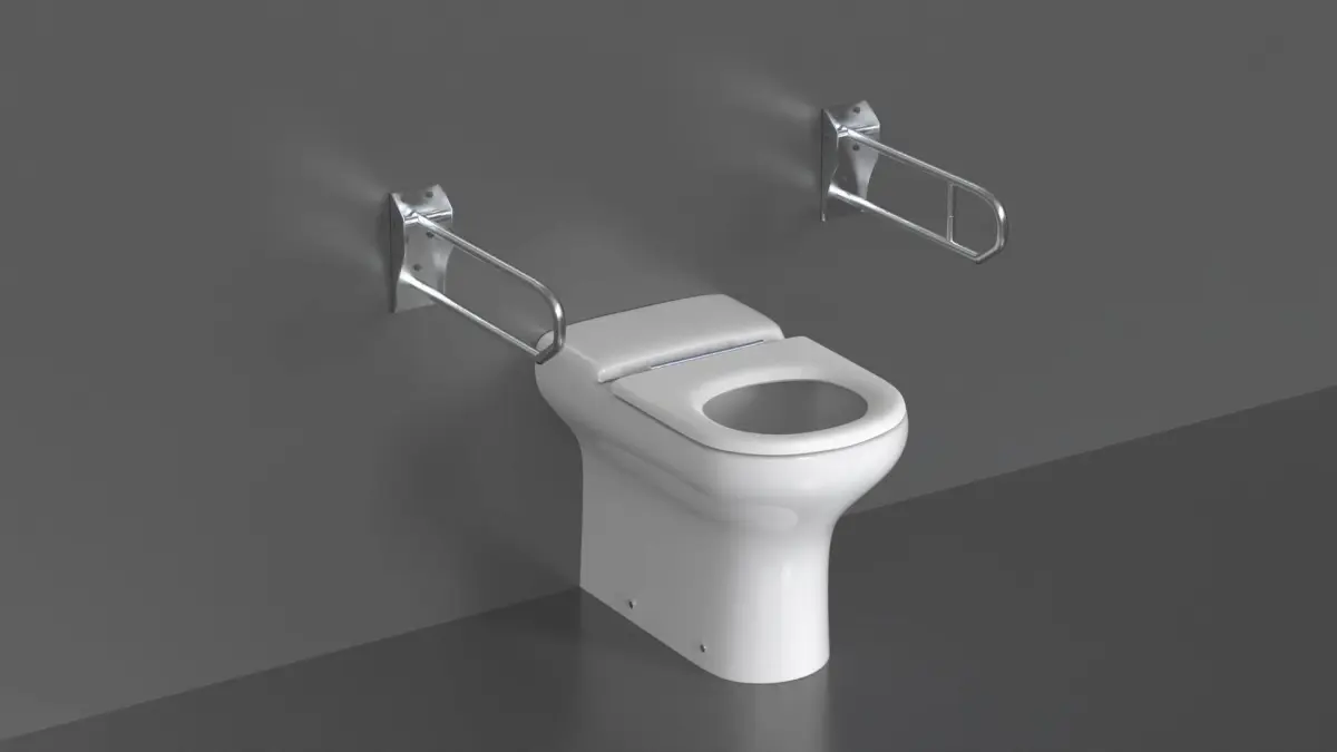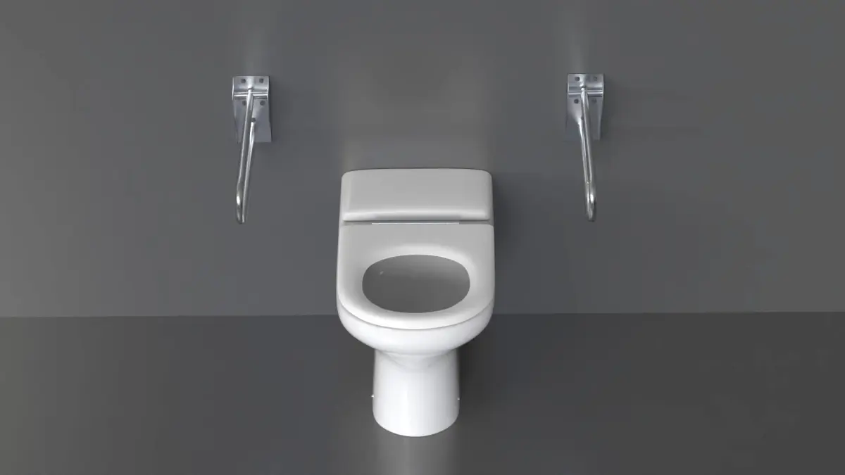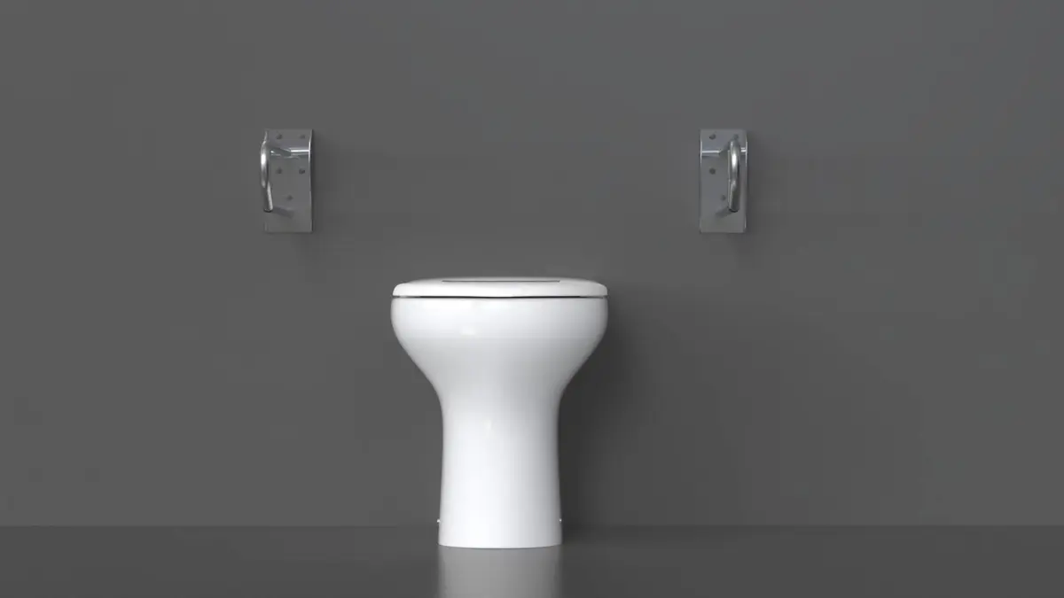 Highly detailed floor-mounted modern WC Toilet with support handles. Modeled in 3DS Max and rendered using KeyShot render engine (although the textures from any render engine can easily be applied).