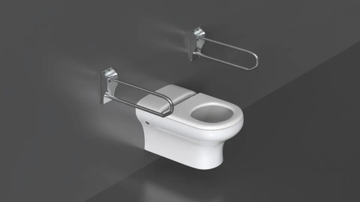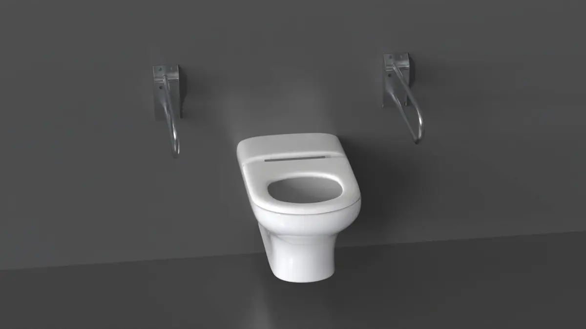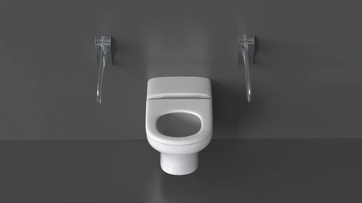 Highly detailed wall-mounted modern WC Toilet with support handles. Modeled in 3DS Max and rendered using KeyShot render engine (although the textures from any render engine can easily be applied).