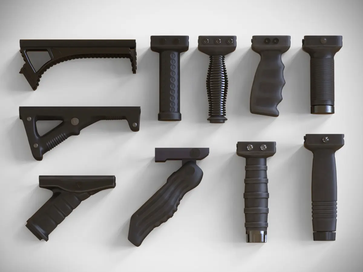 Foregrips:• 6X Vertical Grips.• 3X Angled Grips.• 1X Folding Grip.• 1X Bipod.