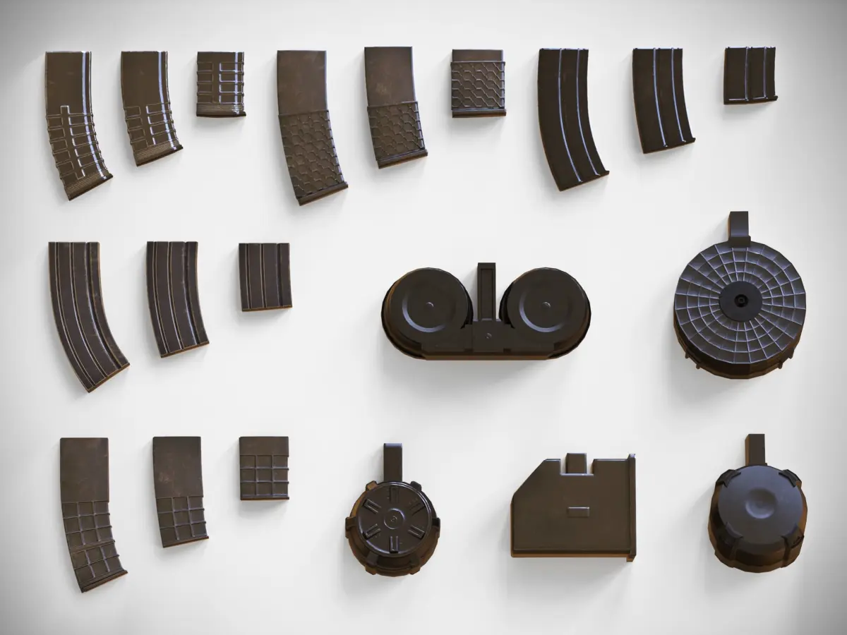 Magazines:• 5X Standard Magazines.• 5X Extended Magazines.• 5X Short Magazines.• 4X Drum Magazines.• 1X Box Magazine.