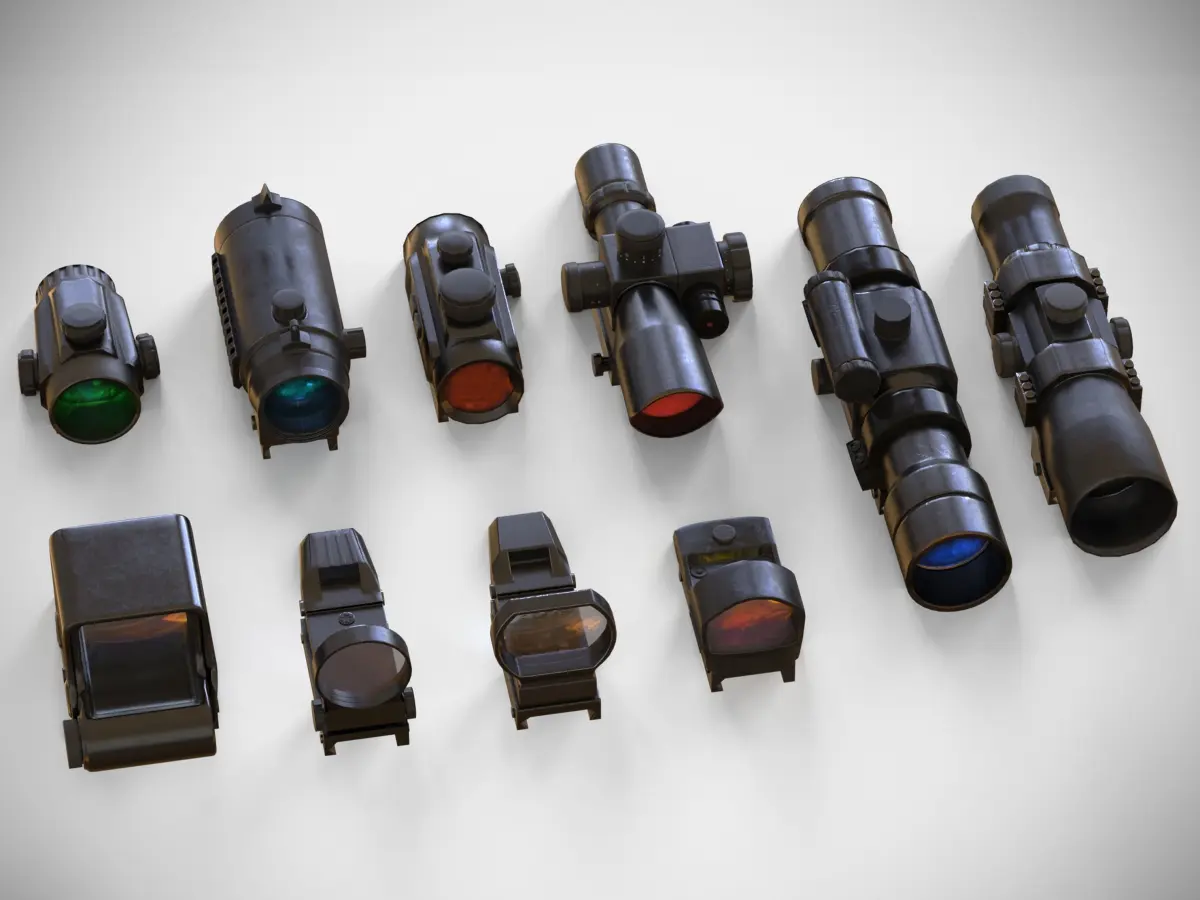 Sights:• 3X Optical Sights.• 3X Reflex Sights (Red Dot).• 3X Telescopic Sights (Scopes).• 1X Holographic Sight.• 1X Magnifier.