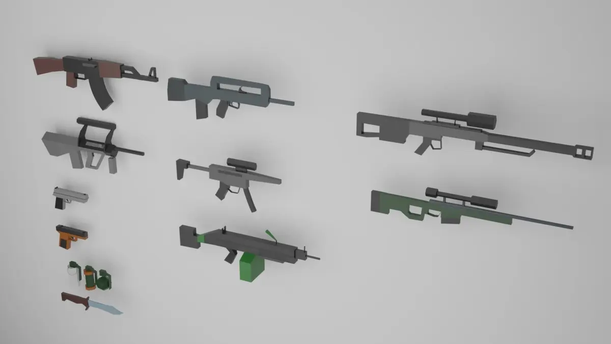 A set of weapons for games. Simple models for your shooters. Models are ready to be imported into the game engine. The set will be expanded with several more models!