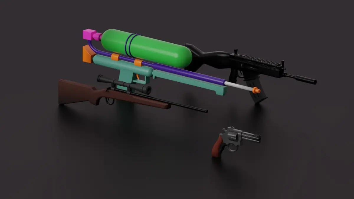 The Weapon Props Softpack is a comprehensive collection of curated 3D models for weapons. It includes meticulously crafted items such as katanas, guns and explosives providing minimalist elements for lowpoly games or virtual reality projects. The asset feature a very curvy and simple style.