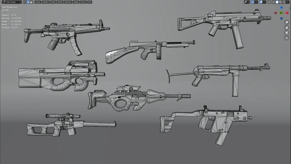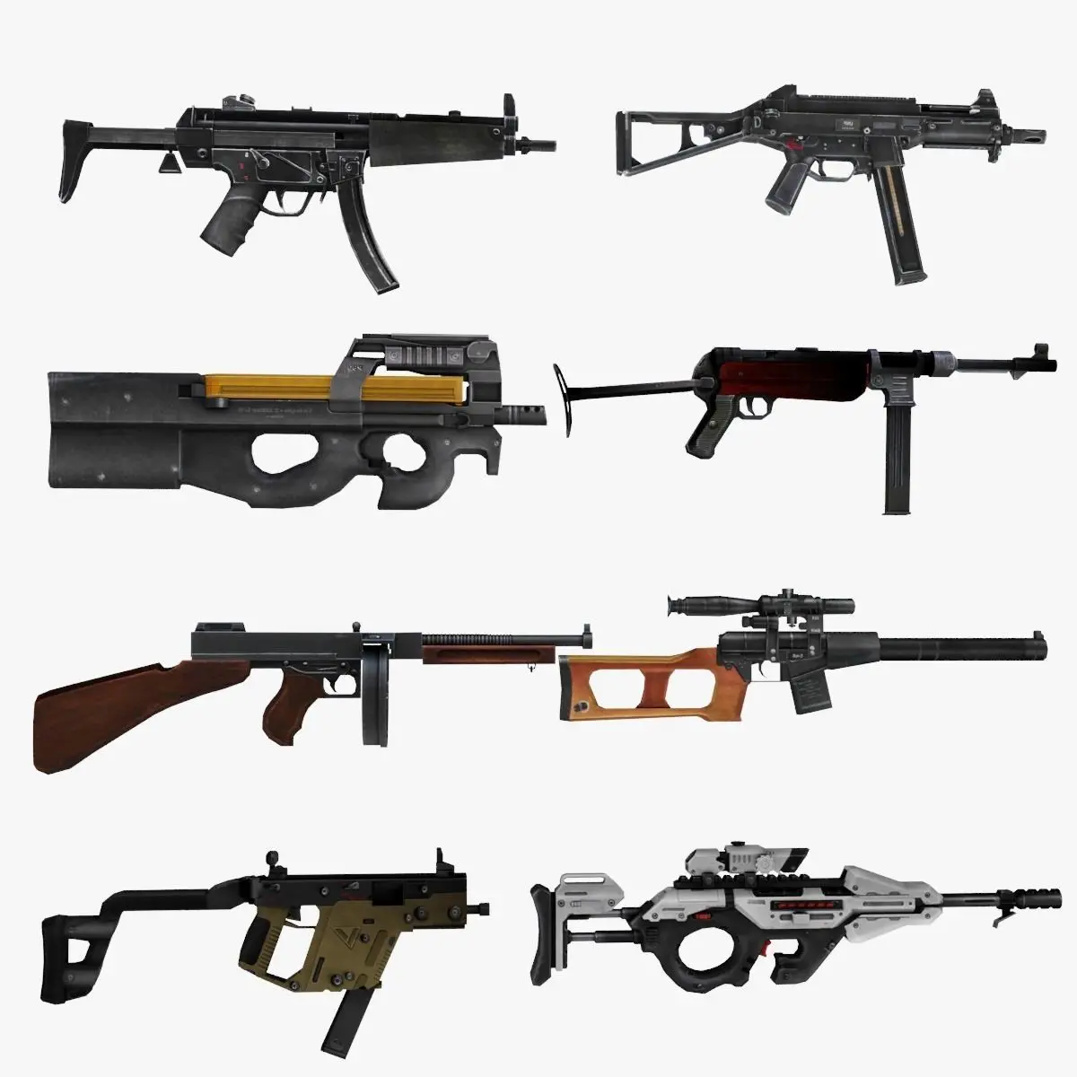 Weapon SMG Thompson Vector VSS UMP CG15 MP5 MP40 P90 3D model