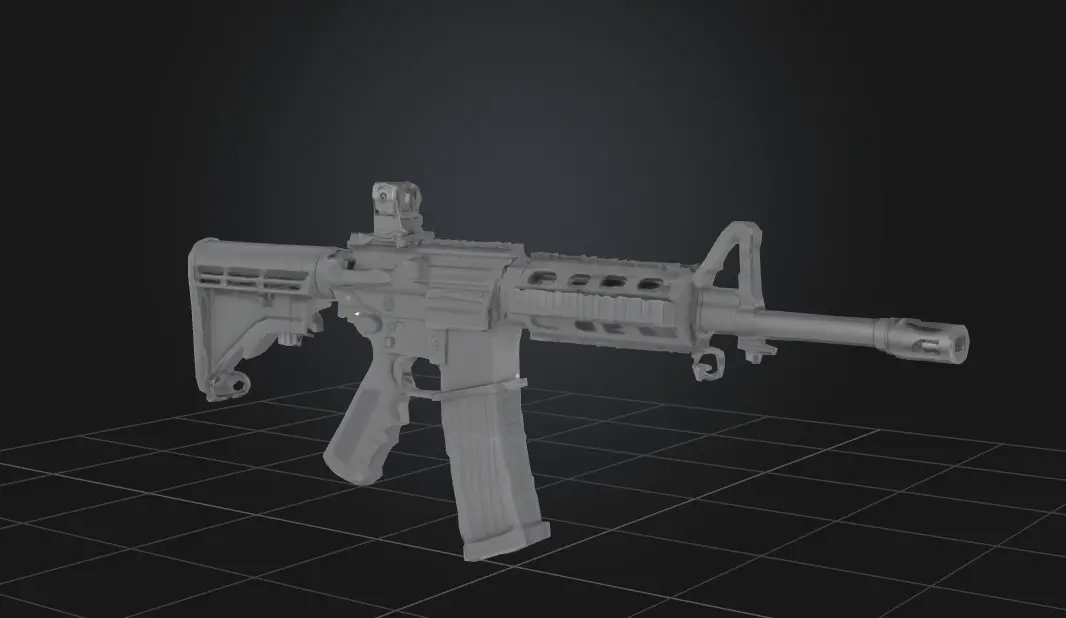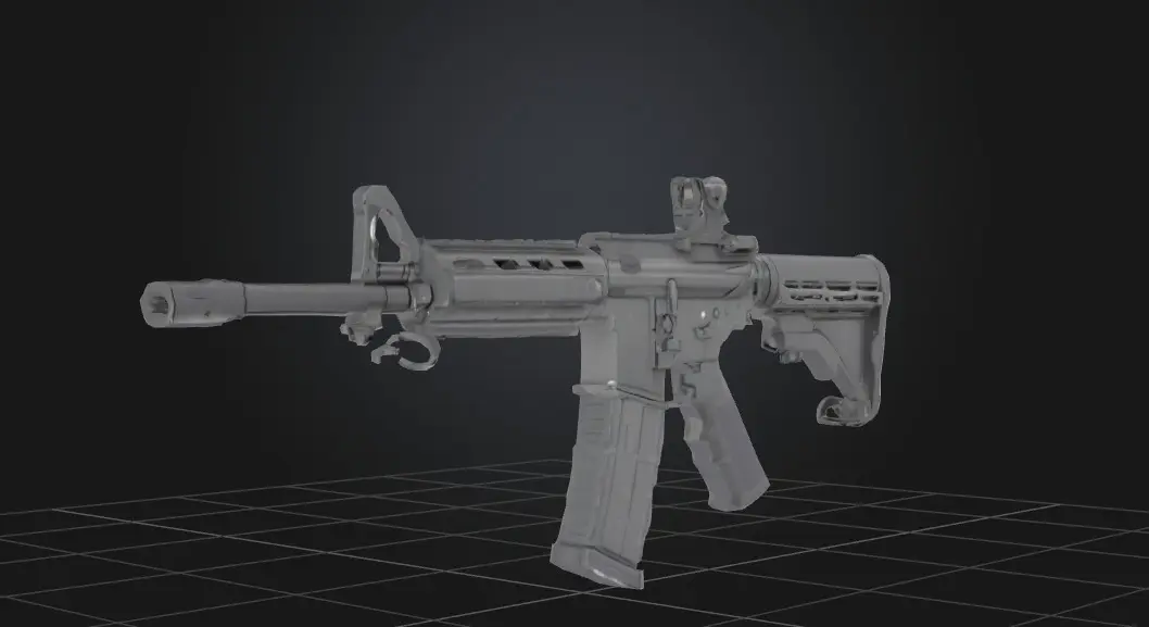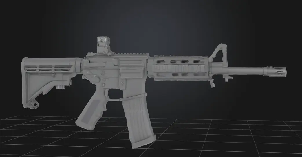 This 3D model packag e features highly detailed representations of a Grenade, M-4 rifle, AR-15 rifle, and Pistol, perfect for game development, simulations, or virtual environments requiring realistic weapon designs.