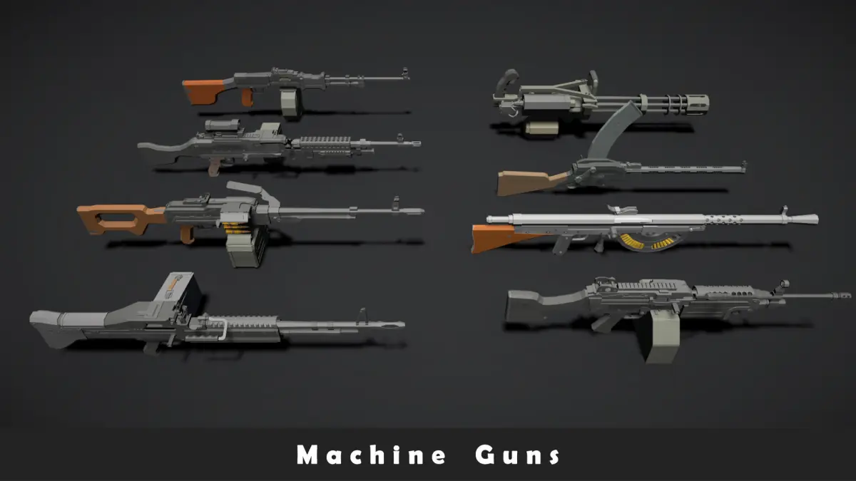 - The collection includes 7 types of guns: