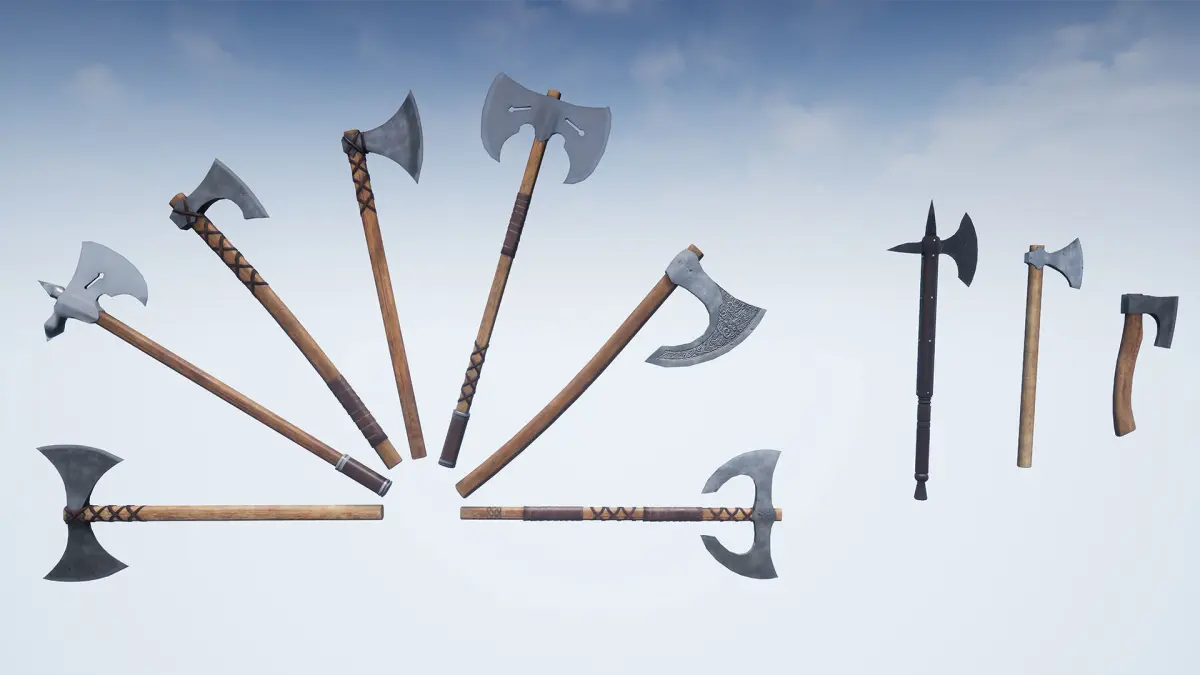 A pack contains high quality realistic medieval weapons assets that could be used in a fantasy scenario in first or third person.