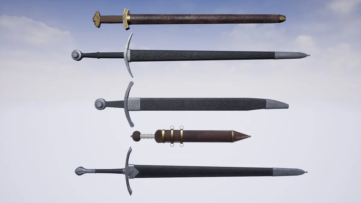A pack contains high quality realistic medieval and none weapons assets that could be used in a fantasy scenario in first or third person.