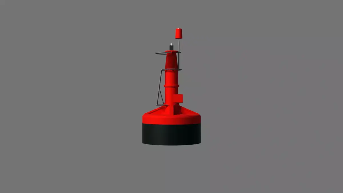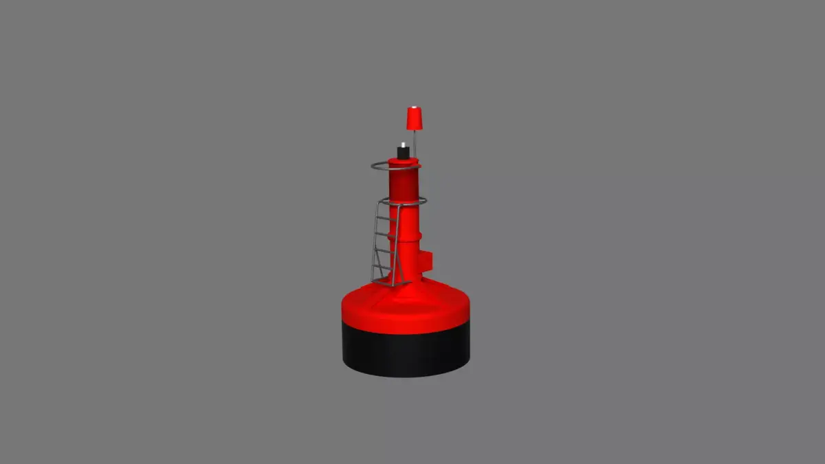 A red buoy with black underbody used for weather purposes. This buoy was based off of the buoy on the ocean just outside of Cape Town. The buoy itself will work great for water scenes. Created in Blender 4.5.3 LTS.