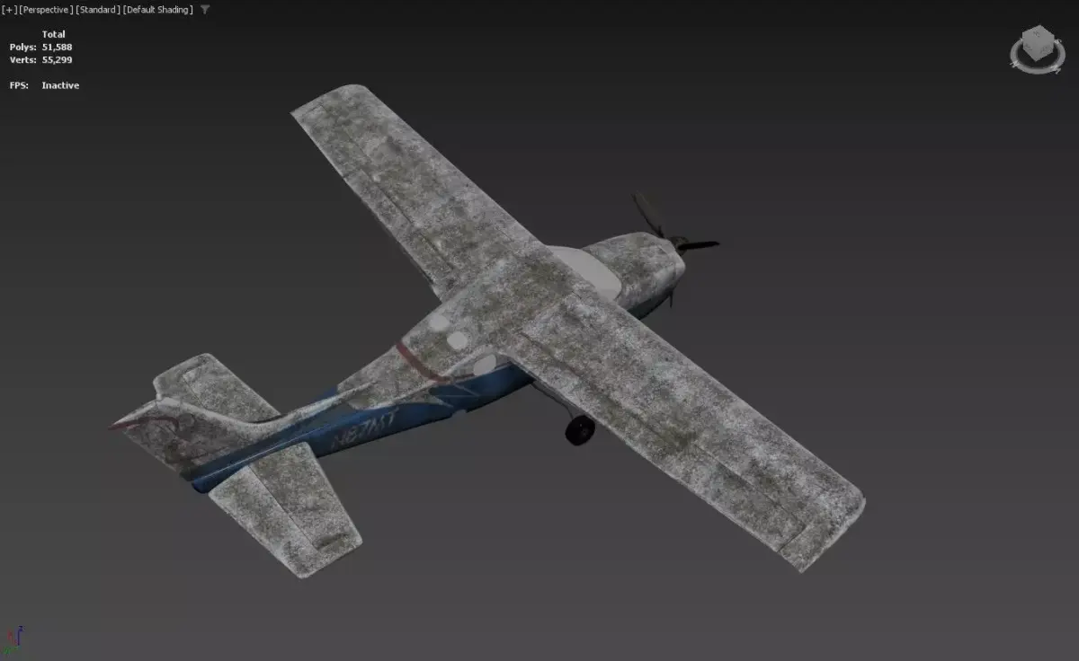 Detailed exterior with aged paint, rust streaks, dirt, and thick snow/frost coverage on wings, fuselage, tail, and propellerRegistration number N87MT on the tail for added realismFixed tricycle landing gear in down position with snow buildupClassic high-wing design with struts, four-seat cabin windows, and single propellerClean topology optimized for both close-up renders and real-time performance