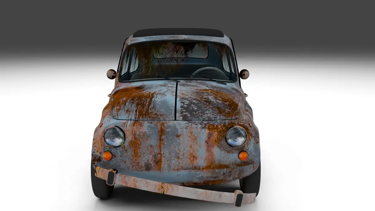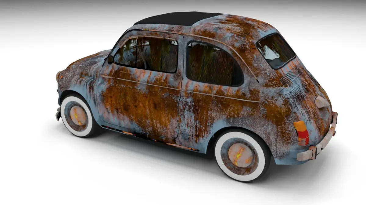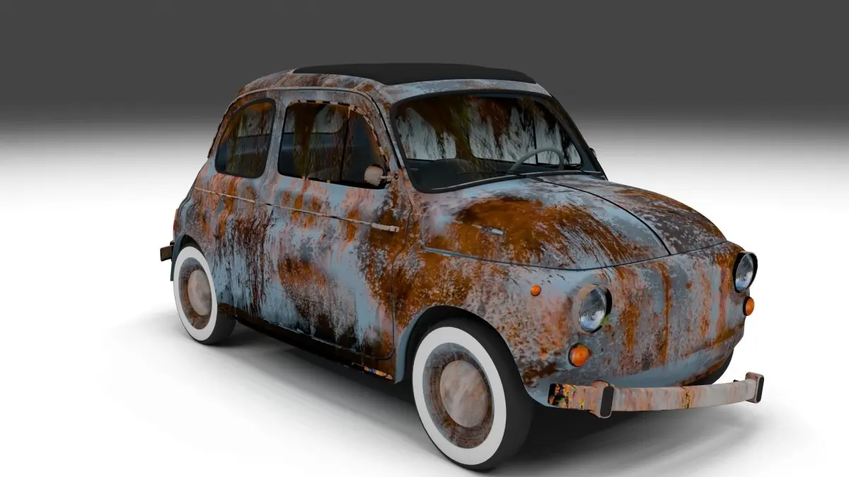 A very accurate model of a rusty/weathered 1957 Fiat 500 Nuova with INTERIOR .