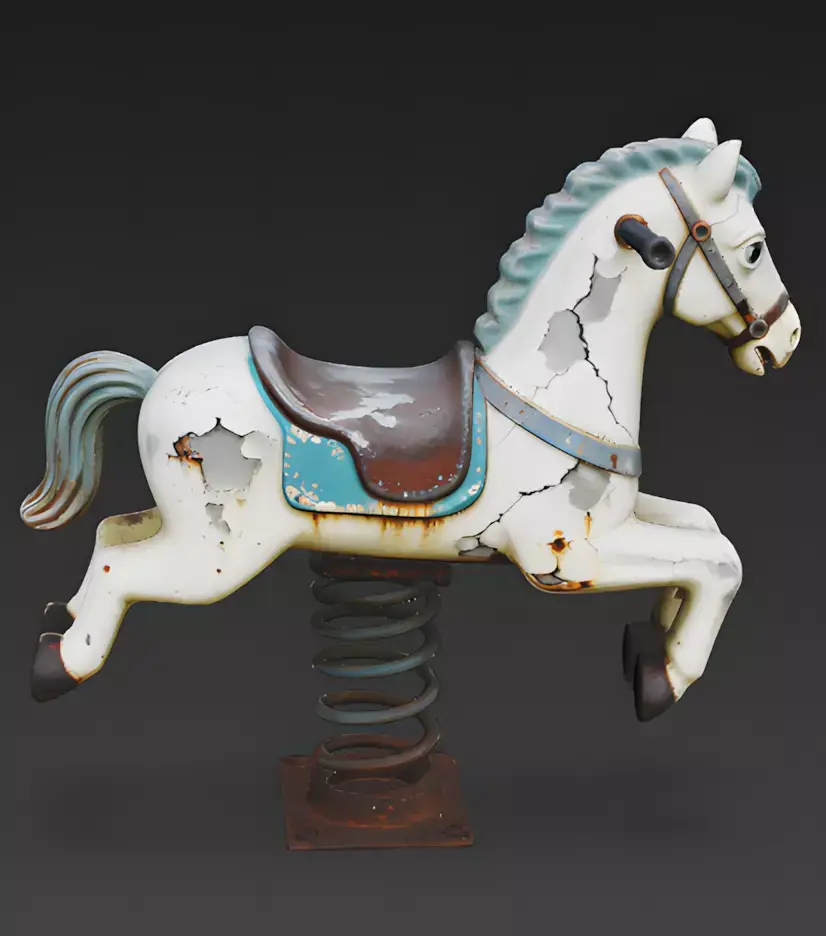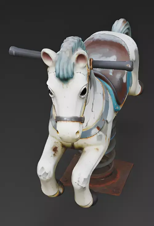 The Overall Concept This asset is a hauntingly beautiful abandoned version of a classic playground spring rider. It features a horse character that has succumbed to heavy environmental wear, making it an ideal prop for post-apocalyptic, rustic, or horror-themed game levels.