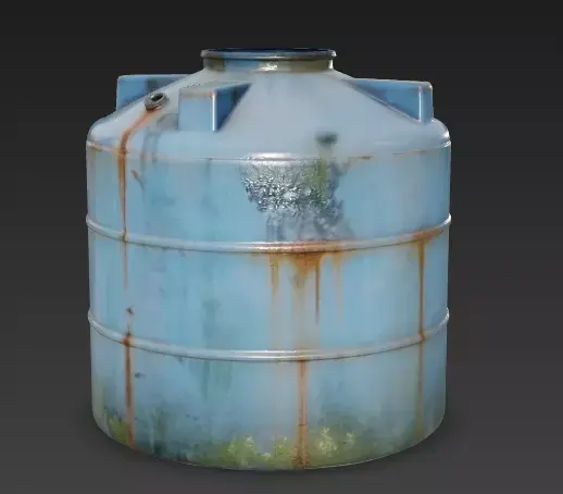 The Overall Concept This asset is a neglected version of the standard blue water tank. Unlike the clean version, this one is covered in dirt and organic growth, making it ideal for abandoned buildings, swamps, or post-apocalyptic environments.