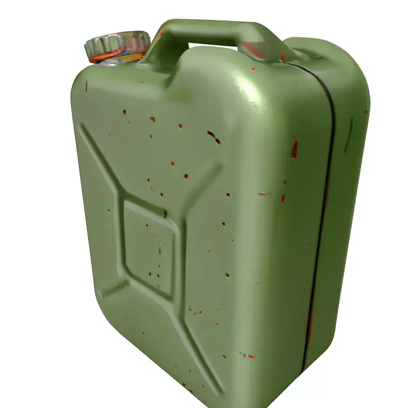 This is a meticulously crafted 3D model of a military-grade jerry can, rendered in a distinctive green finish with authentic weathering and rust details. The model accurately captures the rugged utility and iconic design of a classic fuel or water container, making it an ideal asset for a variety of digital projects. Its high-quality PBR textures provide realistic surface properties, from the matte paint to the subtle metallic sheen and worn edges, enhancing its visual fidelity in any scene. This model is perfectly suited for use in game development as an environmental prop, vehicle accessory, or loot item, enriching the realism of virtual worlds. It is also excellent for architectural visualization projects requiring industrial or outdoor elements, bringing a touch of realism to abandoned sites, military bases, or rural settings. Furthermore, its optimized geometry and detailed texturing make it suitable for augmented reality (AR) and virtual reality (VR) applications, ensuring smooth performance while maintaining visual quality. Digital artists and animators will find this asset invaluable for creating compelling scenes, while its clean topology ensures easy manipulation and integration into various pipelines. The model comes fully UV unwrapped and is compatible with a wide range of 3D software, supporting popular formats such as GLB, OBJ, FBX, USD, DAE, and PLY for seamless workflow integration. Whether for real-time applications or high-fidelity renderings, this jerry can model delivers exceptional detail and versatility.